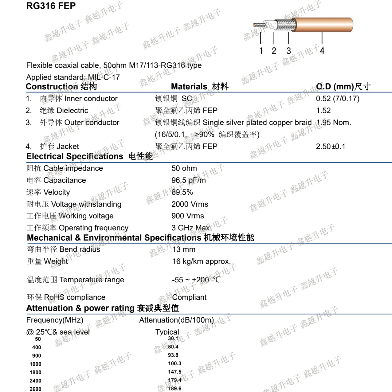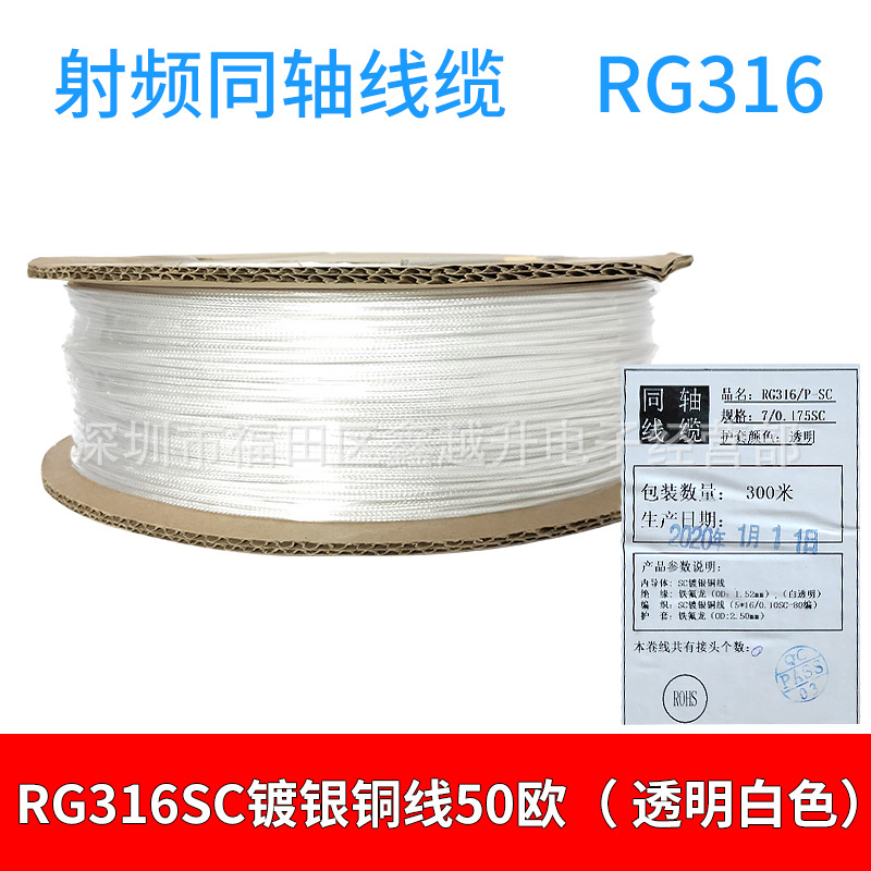 RG316射频同轴线50-1.5外径2.5MM/50欧姆铁氟龙