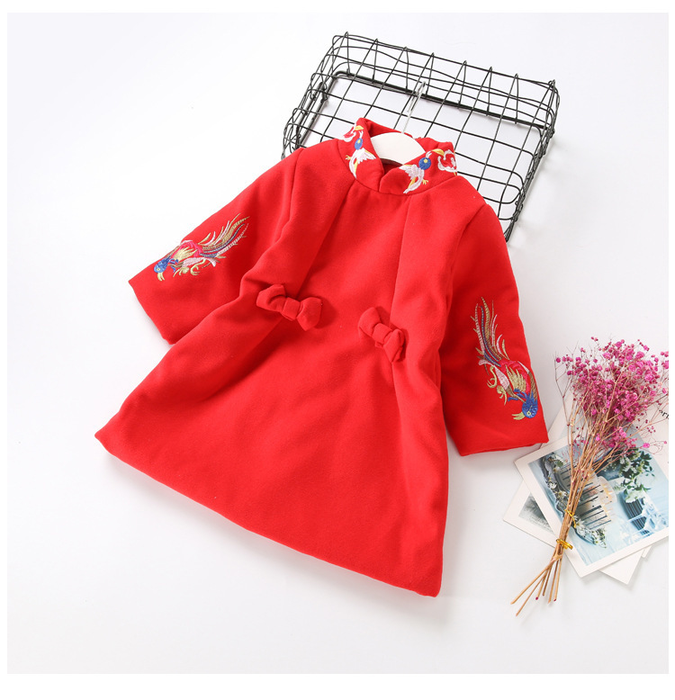 Новое зимнее платье Чонсам с вышивкой для девочек, новогоднее утолщенное красное детское платье Тан в китайском стиле, Новогодняя одежда