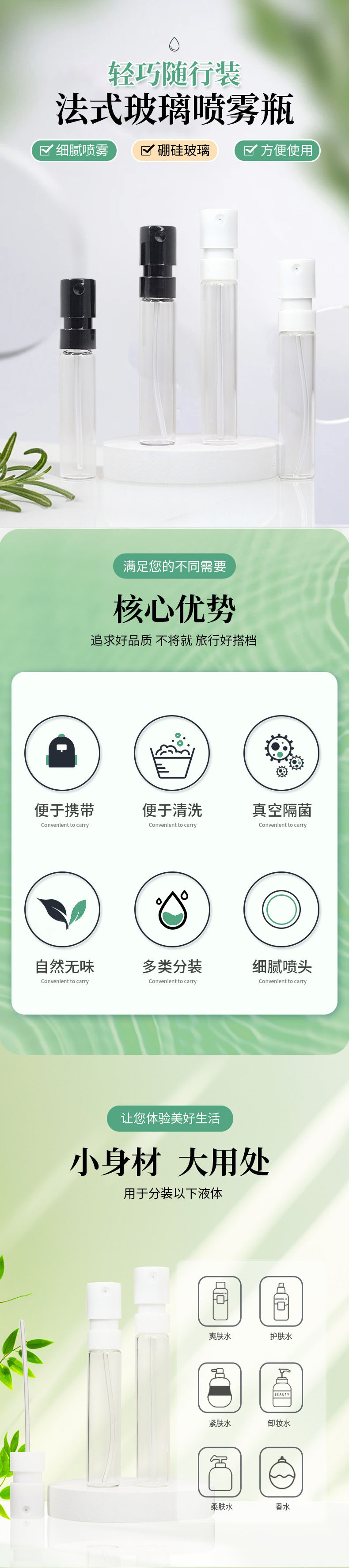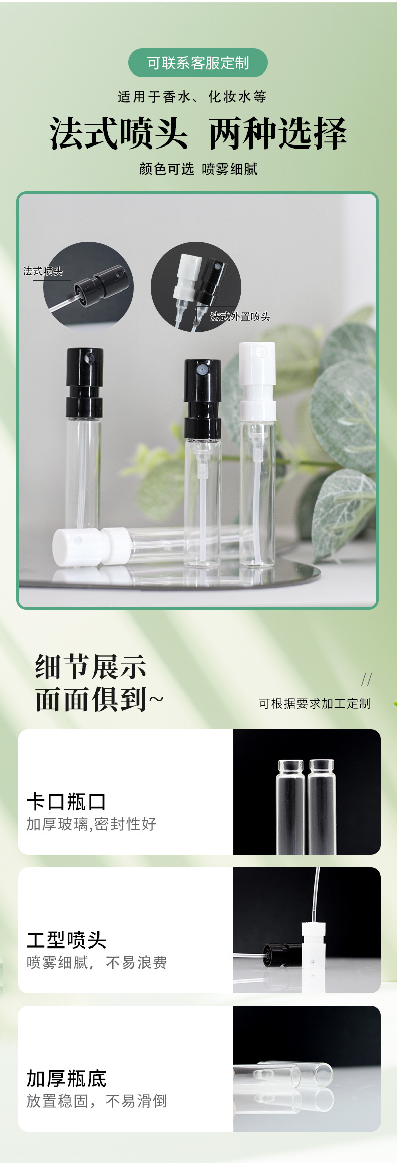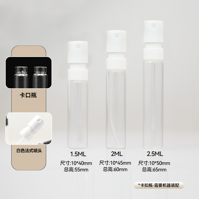 Спот 1.5ml Прозрачная французская бутылка для распыления 2ml Парфюмерная бутылка для небольших образцов 2.5ml портативная мини-стеклянная бутылка