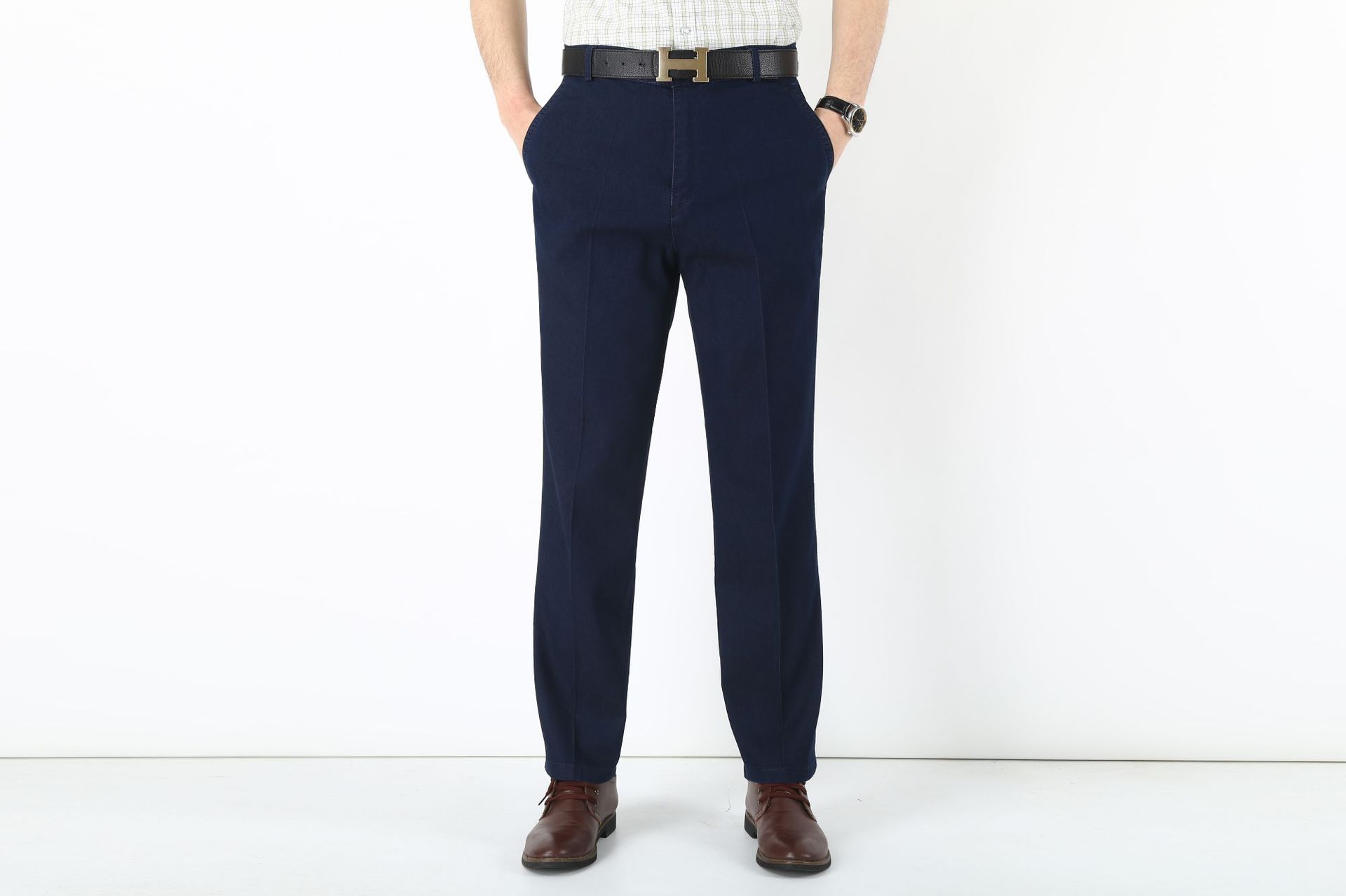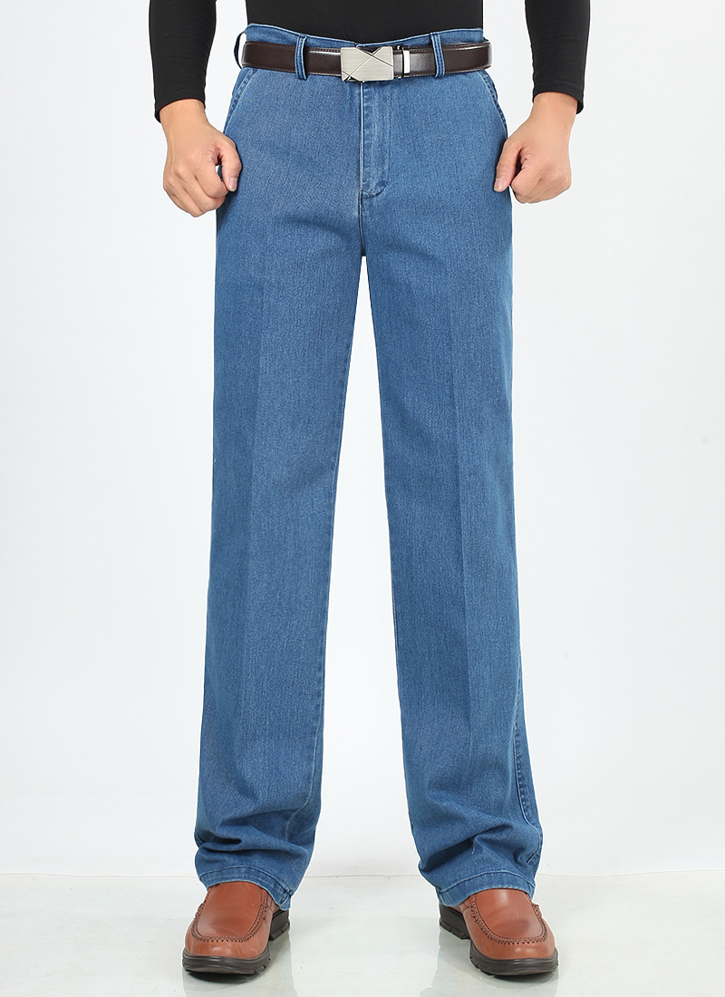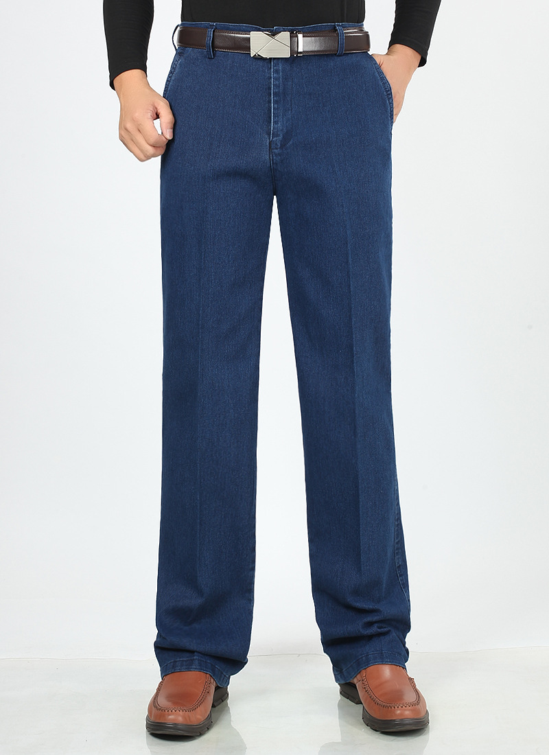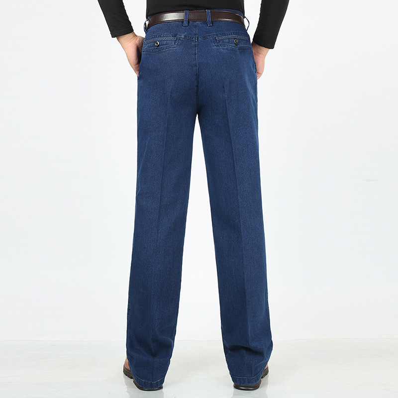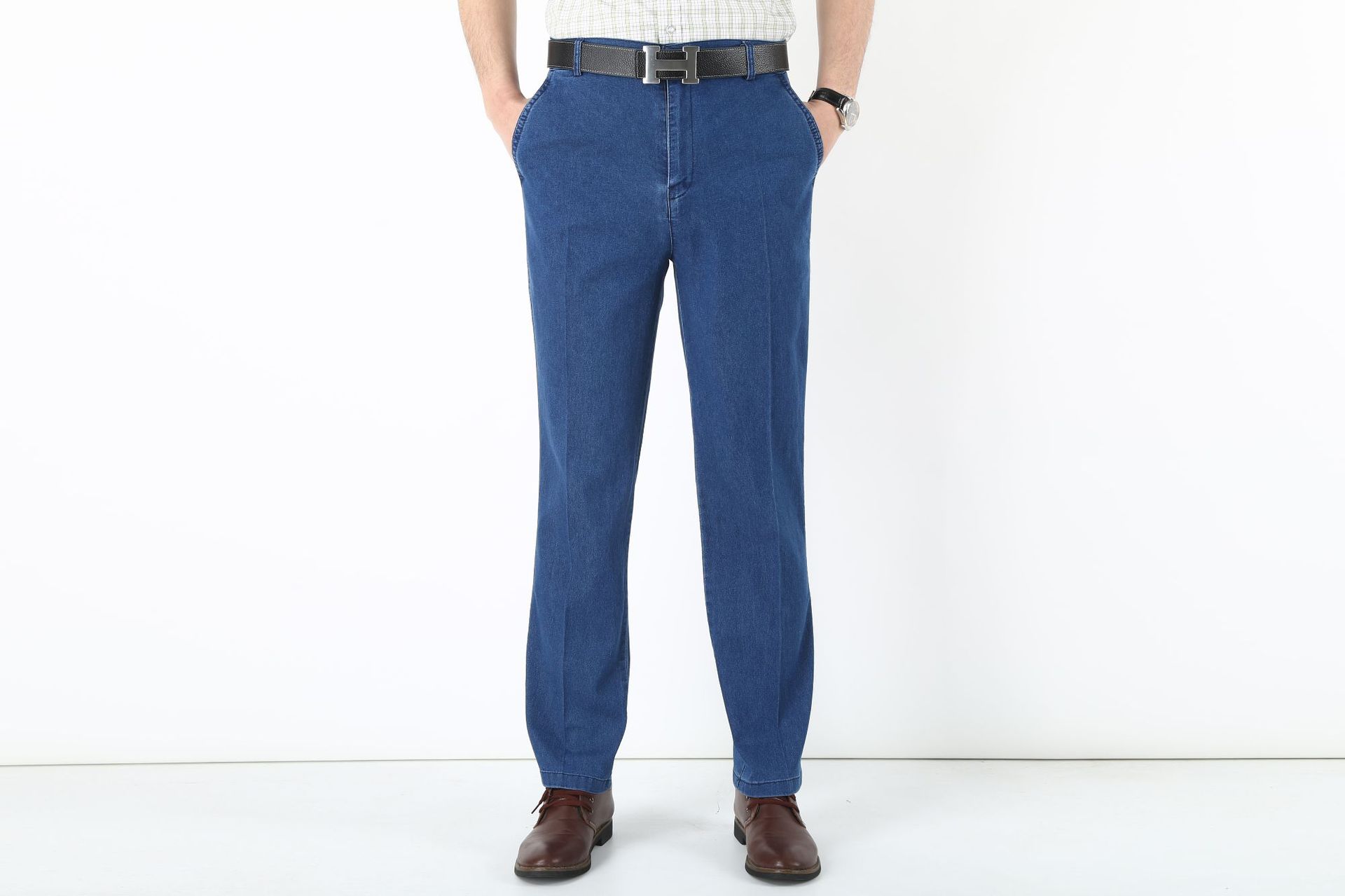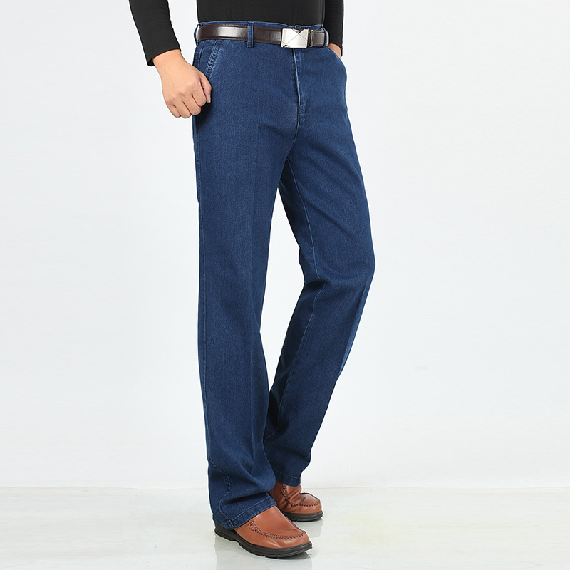 Весенне-летние тонкие деловые джинсы среднего возраста мужские брюки больших размеров оптом эластичные свободные прямые брюки с высокой талией в винтажном стиле