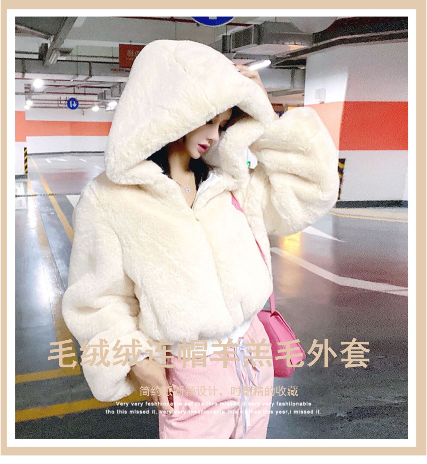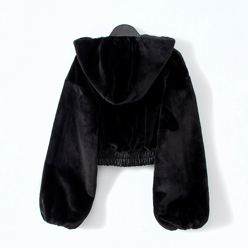 Новая женская укороченная куртка с капюшоном из текстурированного меха в европейском и американском уличном стиле, коллекция 2025 года