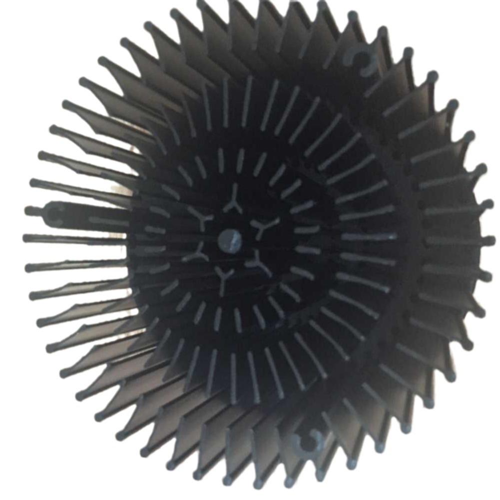 b、而同为一体式的压铸产品材质的导热系数只有96m.k,而且叶片不能太薄太多,增加产品重量;压铸产品表面不能做阳极处理,只能烤漆,烤漆表面会影响热量散发出来