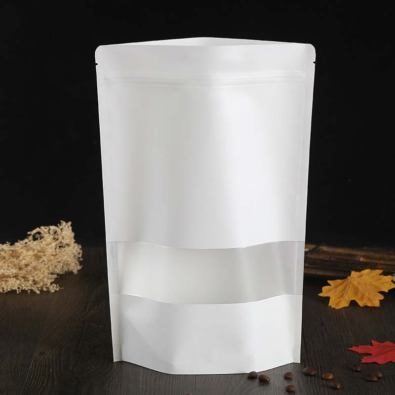Белый бумажный мешок Крафт заморозил само-поддерживая сумку упаковки еды закусок пакетика чая окна само-запечатывания красными загерметизированную датами