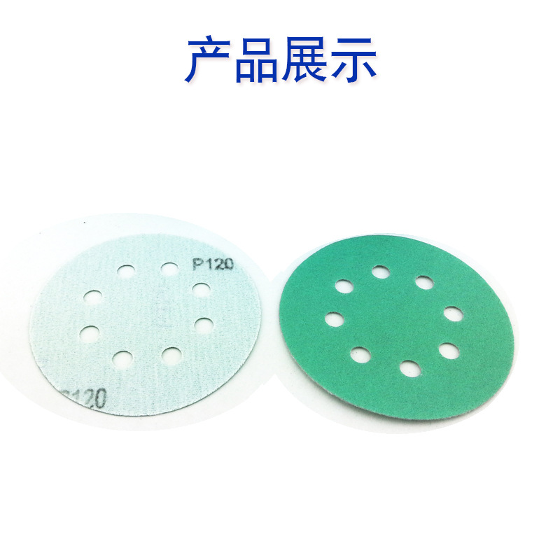 5寸8孔干磨砂纸片绿色植绒薄膜绿砂打磨抛光汽车金属125MM自粘