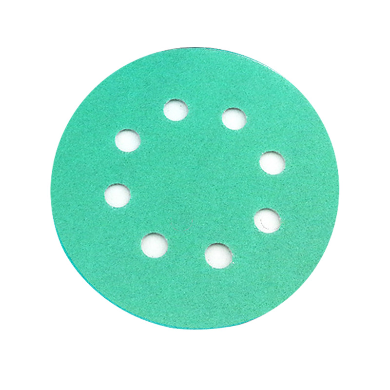 5 дюймов сухая шлифовальная бумага с 8 отверстиями Зеленая флокирующая пленка Полировка зеленого песка автомобильный Металл 125 мм самоклеящийся