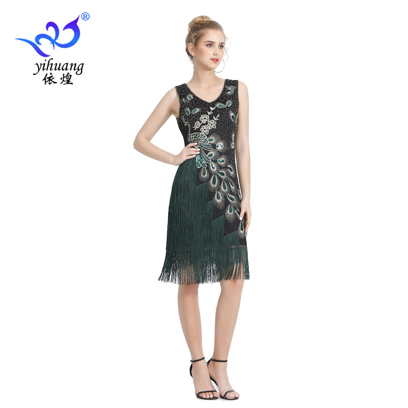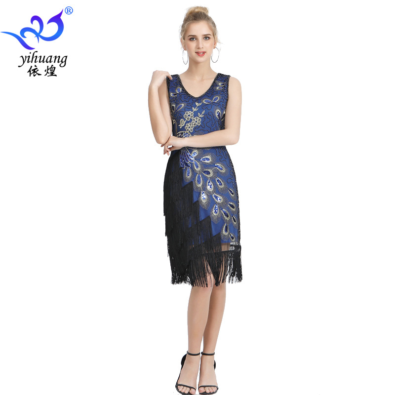 Маленькое платье с блестками 1920-х годов винтажное танцевальное платье с кисточками и блестками больших размеров, платье с V-образным вырезом, маленькое платье для выпускного вечера
