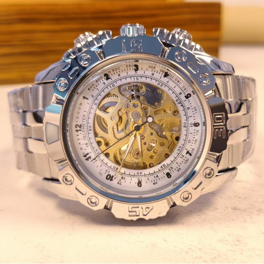 Персонализированные новые автоматические механические мужские модные часы полный стальной ремешок полые механические часы завод прямых продаж