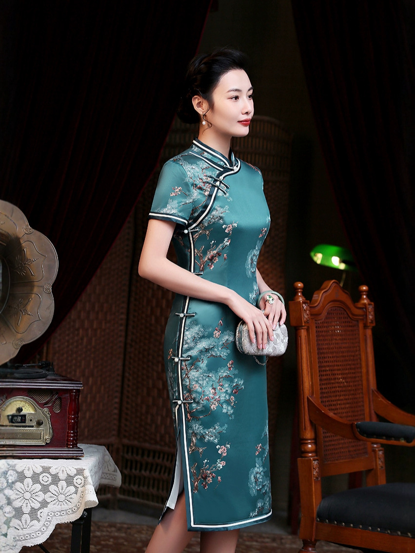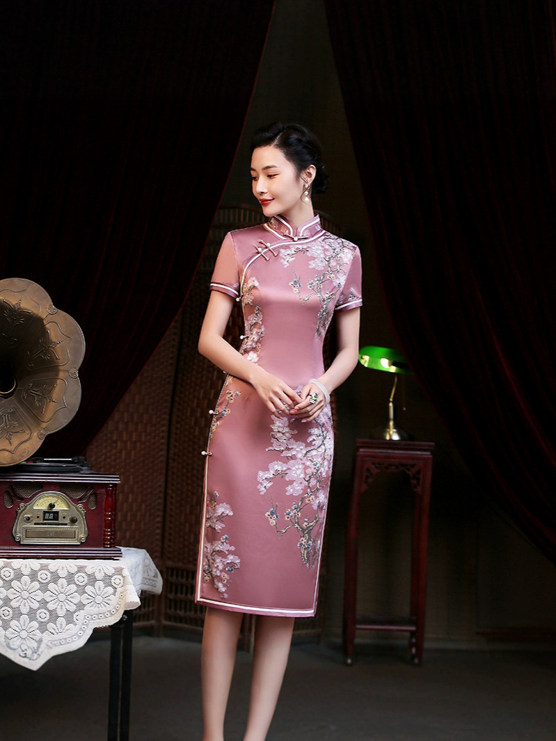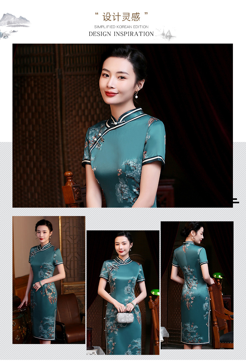 Мода Seiko Diamond Sils Cheongsam Летняя девушка 2024 новый короткий рукав повседневное платье в китайском стиле банкет