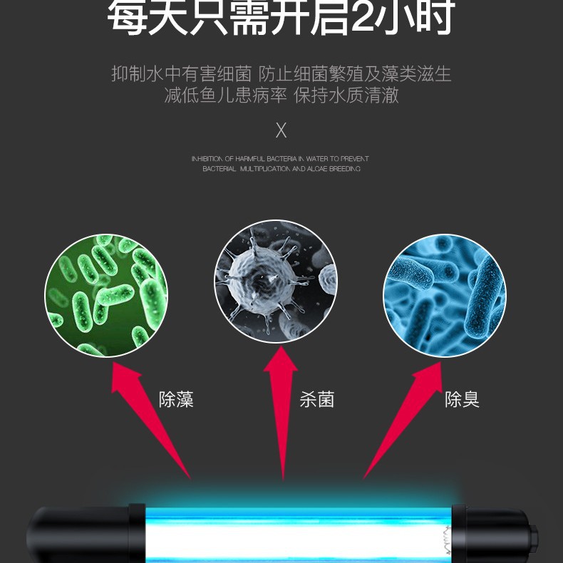 杀菌灯只能放在过滤槽内使用,不能直接放在鱼缸中使用,