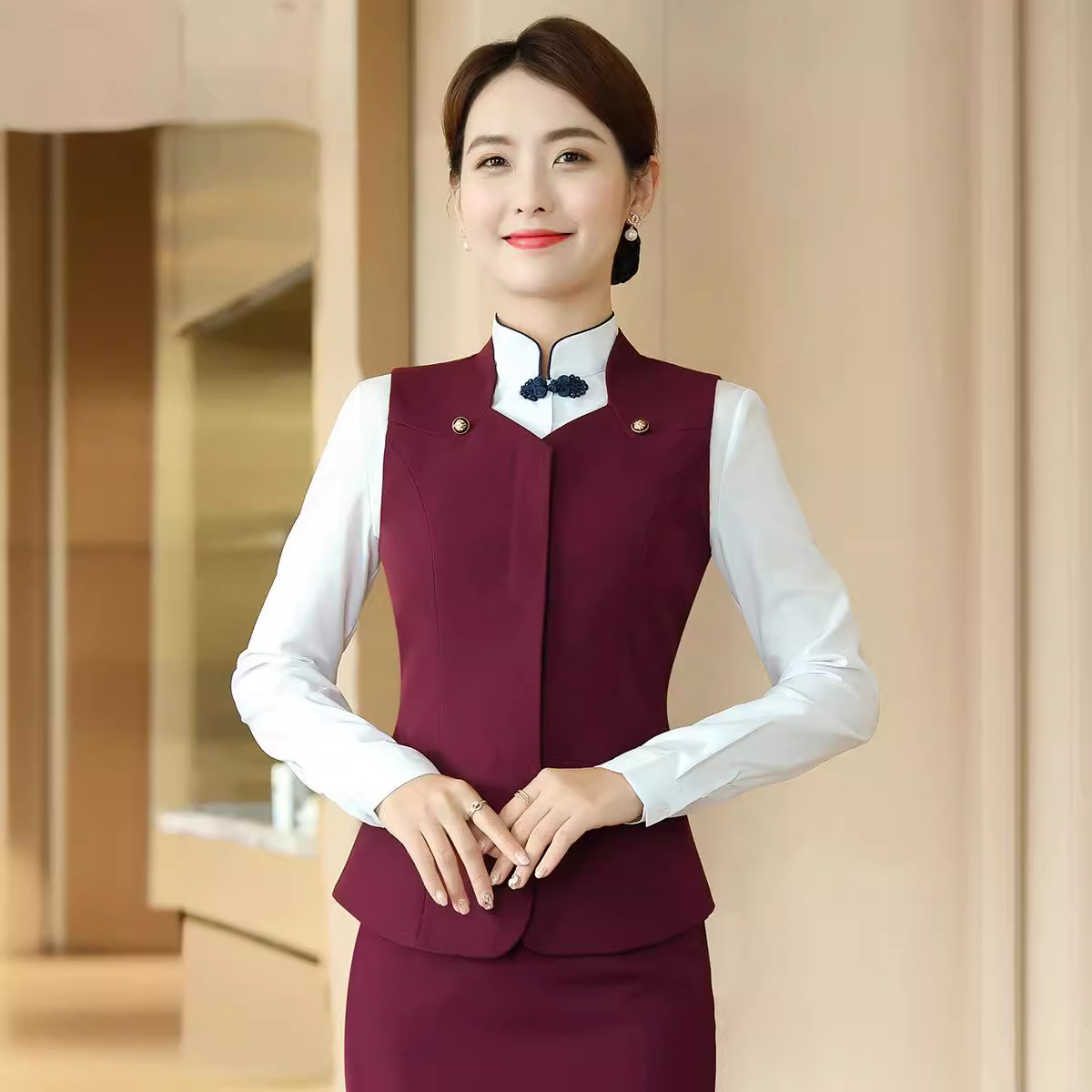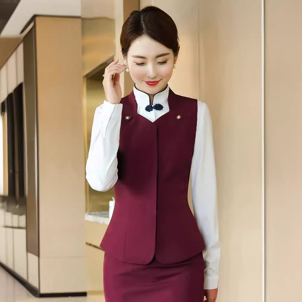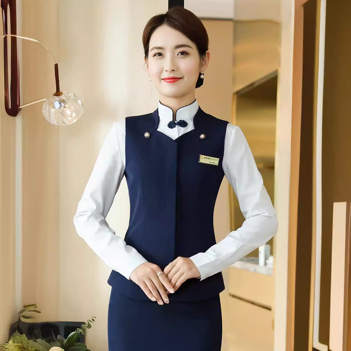 Профессиональная женская одежда Жилет костюм Кейтеринг Участник отеля Кассир Салон красоты Техник Приемная Рабочая одежда