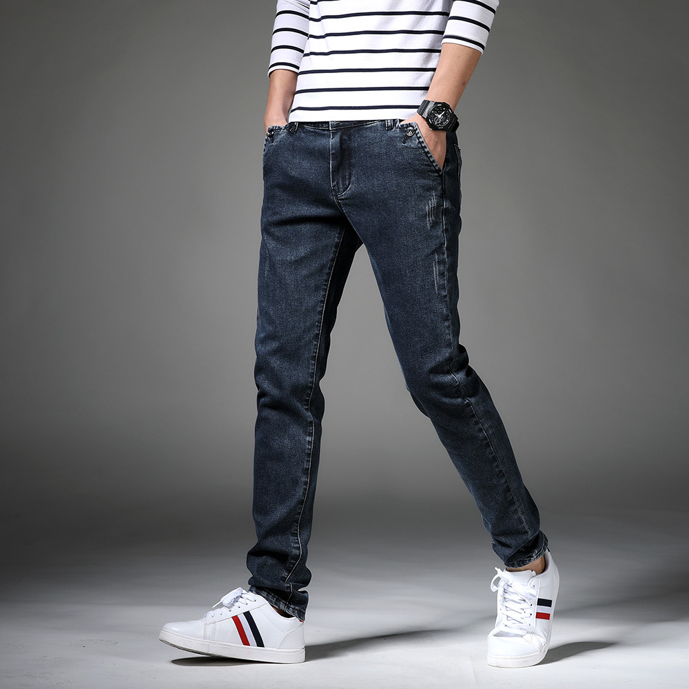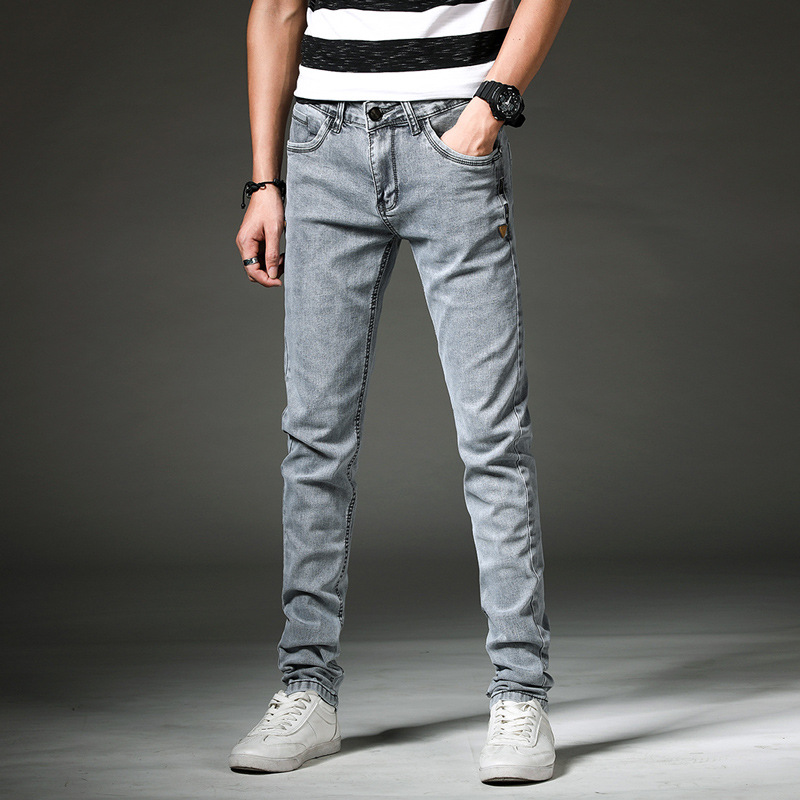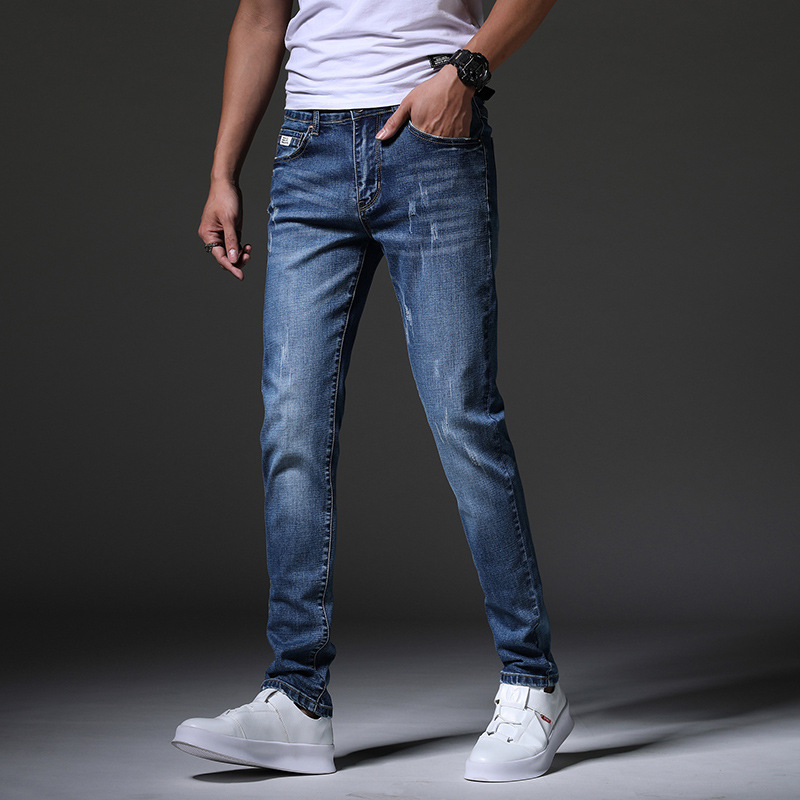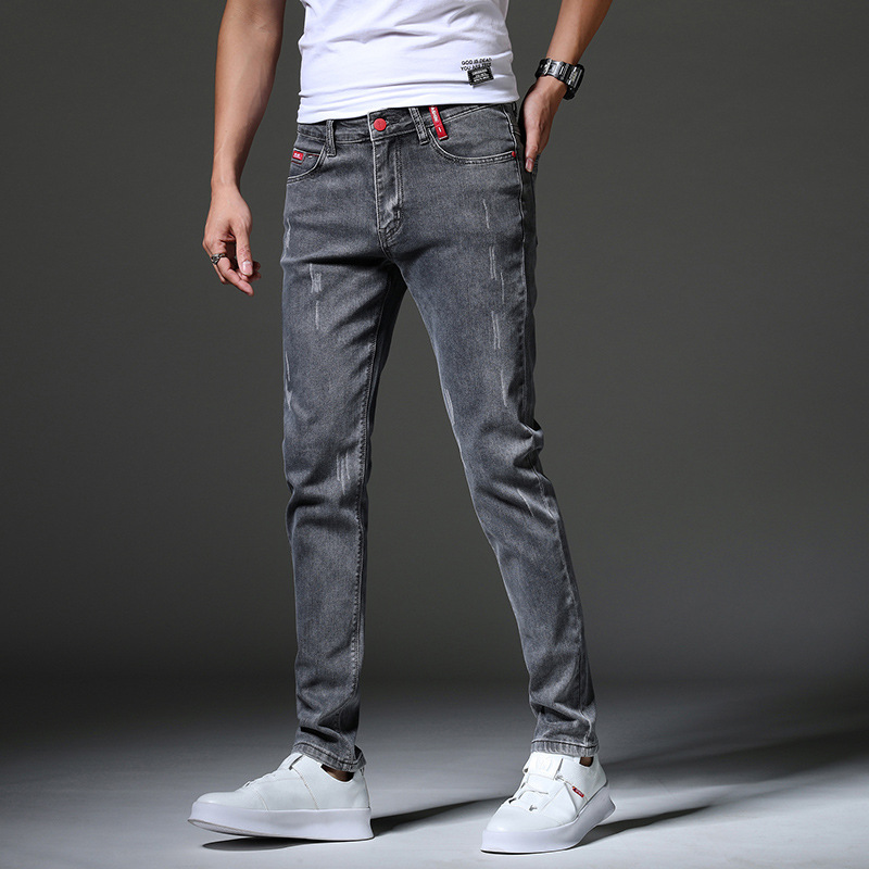Новые мужские джинсы на весну и осень, модные трендовые эластичные облегающие брюки-скинни, корейские мужские длинные брюки для подростков