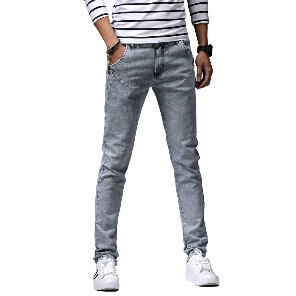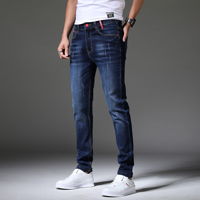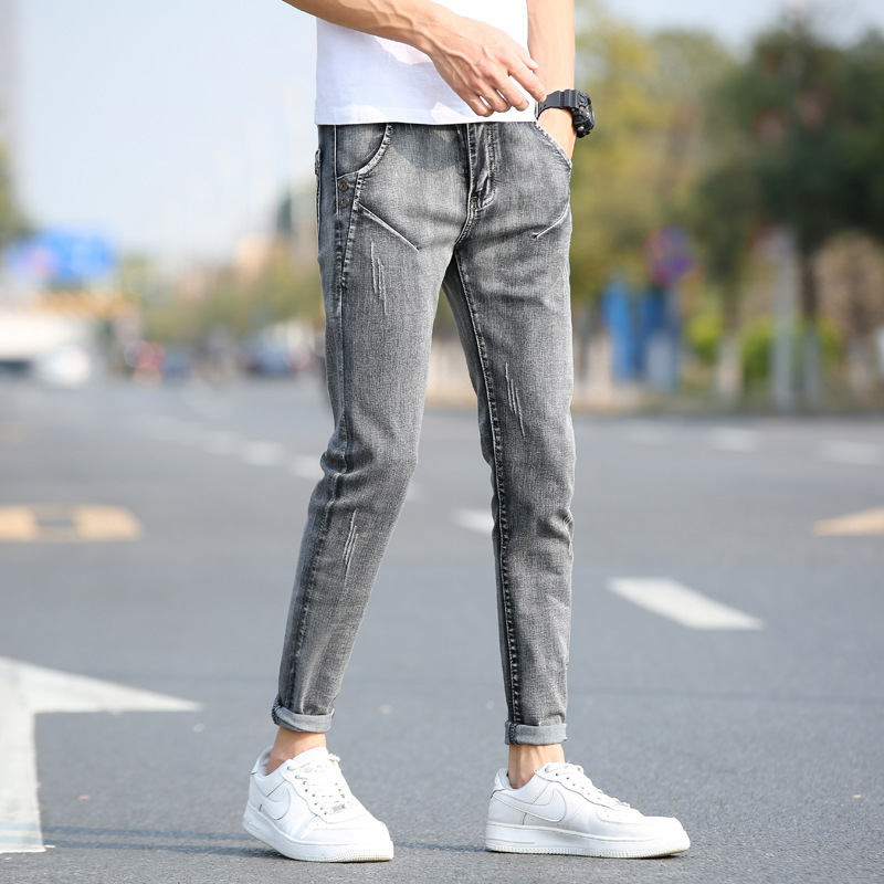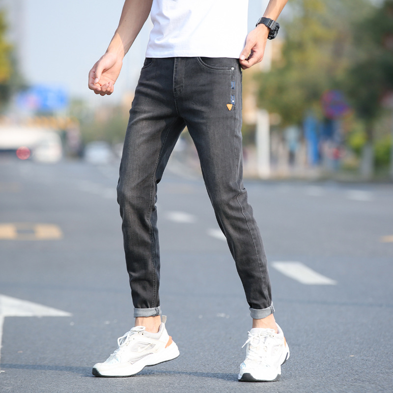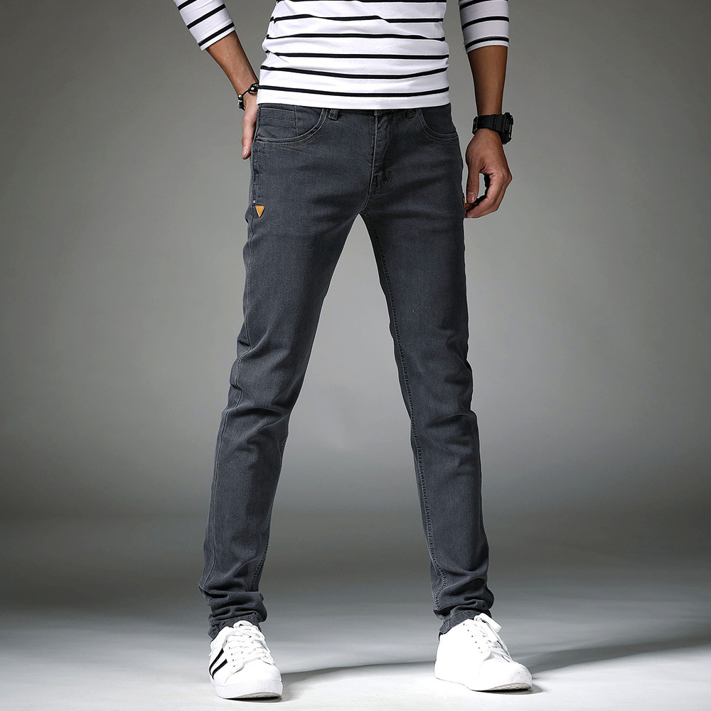 Новые мужские джинсы на весну и осень, модные трендовые эластичные облегающие брюки-скинни, корейские мужские длинные брюки для подростков