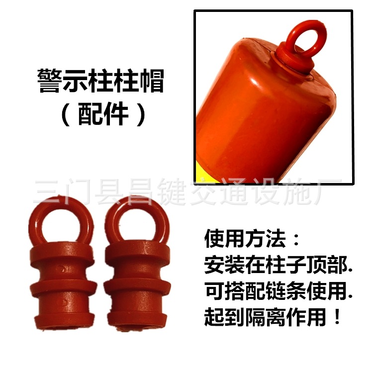适合绝大多数顶端带孔的警示柱(弹力柱),用于警示柱顶部安装,安装后可搭配塑料链条、警戒带等产品使用,可起到隔离、警戒等作用。