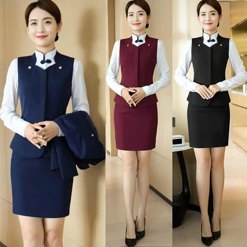 Кассир отеля Профессиональный женский костюм с длинным рукавом Косметичка Ювелирный магазин Ресторан Официант Рабочая одежда
