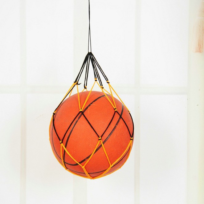 Утолщенная сетка для мячей, сетка для хранения одного футбольного/баскетбольного мяча, нейлоновый шнур, черно-желтая сетка для мячей, портативная и складная.