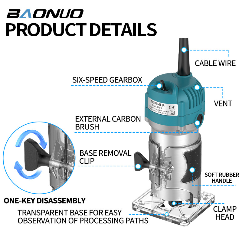 Триммер, прямые продажи, электрические деревообрабатывающие инструменты, гравировка, открытие отверстий, прорезка, многофункциональная маленькая фаска, электрическая фрезерная машина по дереву