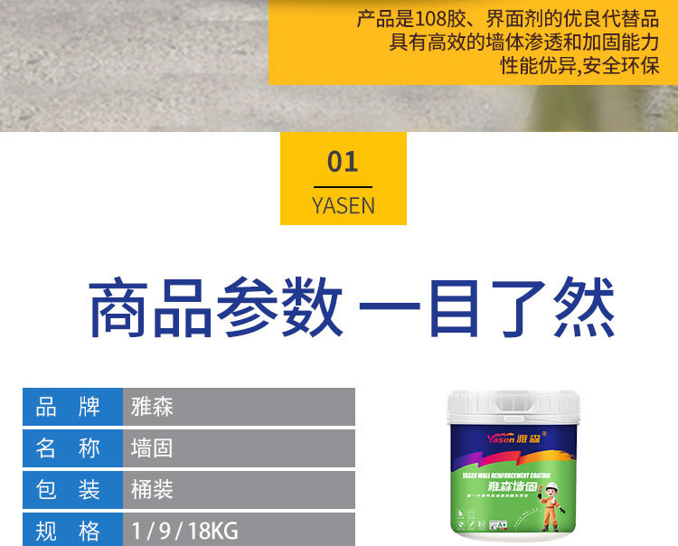 Ясень стены отверждения агент интерфейс агент стены твердый водонепроницаемый и плесени-доказательство для предотвращения золы и удаления порошка базовый усиливающий агент