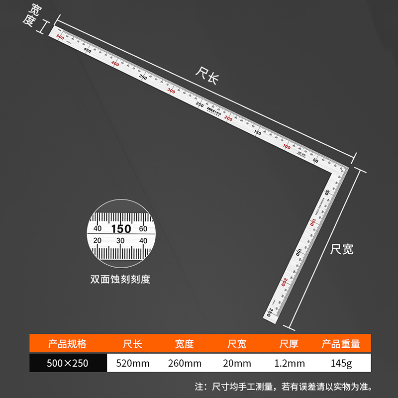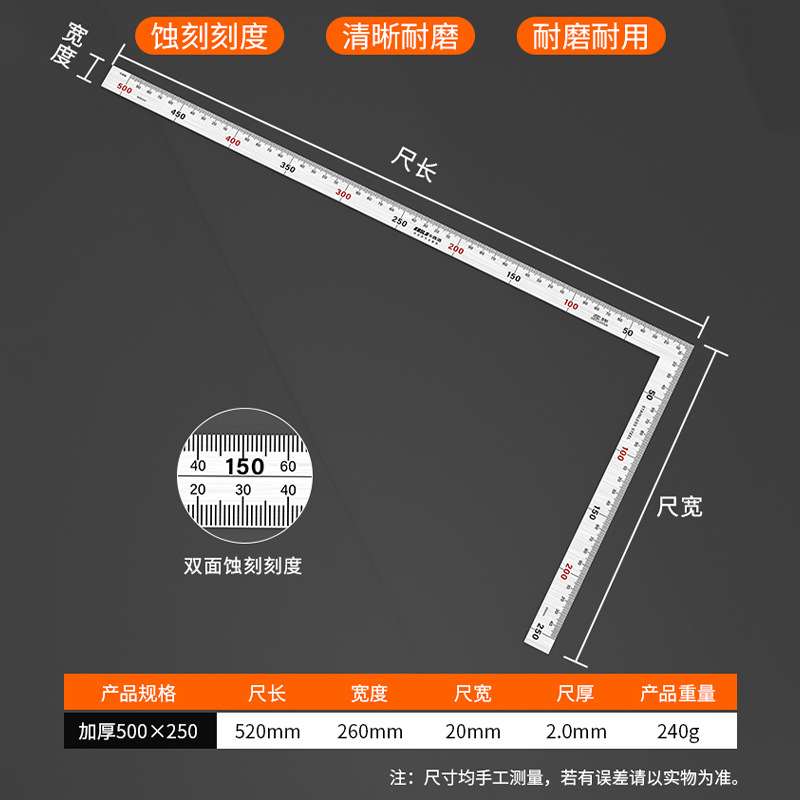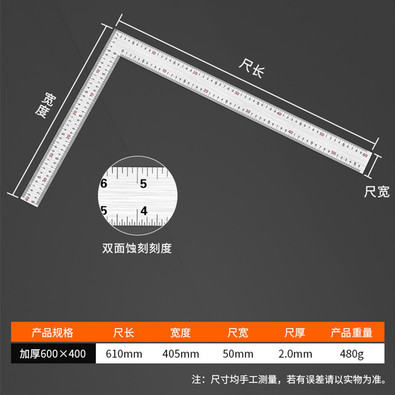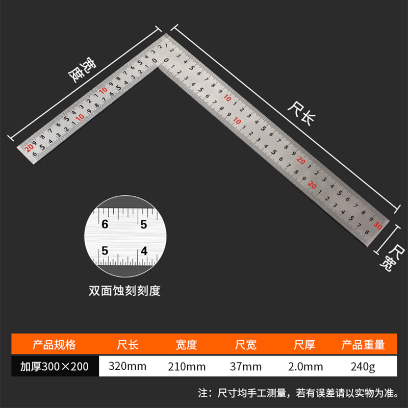 Источник производителя Оптовая прямоугольная линейка 90 градусов из нержавеющей стали утолщение руля 30/50/60 см Деревообрабатывающая линейка 1 метр