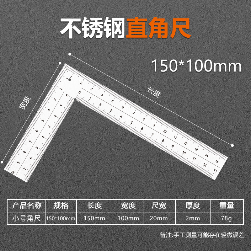 Прямой угол 100*50 мм [толщина 1,2 мм]; Прямой угол линейка из нержавеющей стали 150*100 мм [толщина 2 мм]; Прямой угол 300*150MM [1,2 MM толщиной]; Прямой угол поворот 500*250MM [1,2 MM толщиной]; Прямой угол 300*150MM [2MM толщиной]; Прямой угол поворот 500*250 мм [2 мм толщиной]; Прямой угол 300*200MM [новый] 2MM толстый; Прямой угол руля 600*400MM [новый] 2MM толстый; Прямой угол руля 1 метр × 50 [2 мм толщиной]; Прямой угол поворот 600*400MM [черный толщиной 2MM]; Прямой угол линейка 300*200MM черный толщиной 2MM; Угольник 300*200 [модель из белой углеродистой стали]