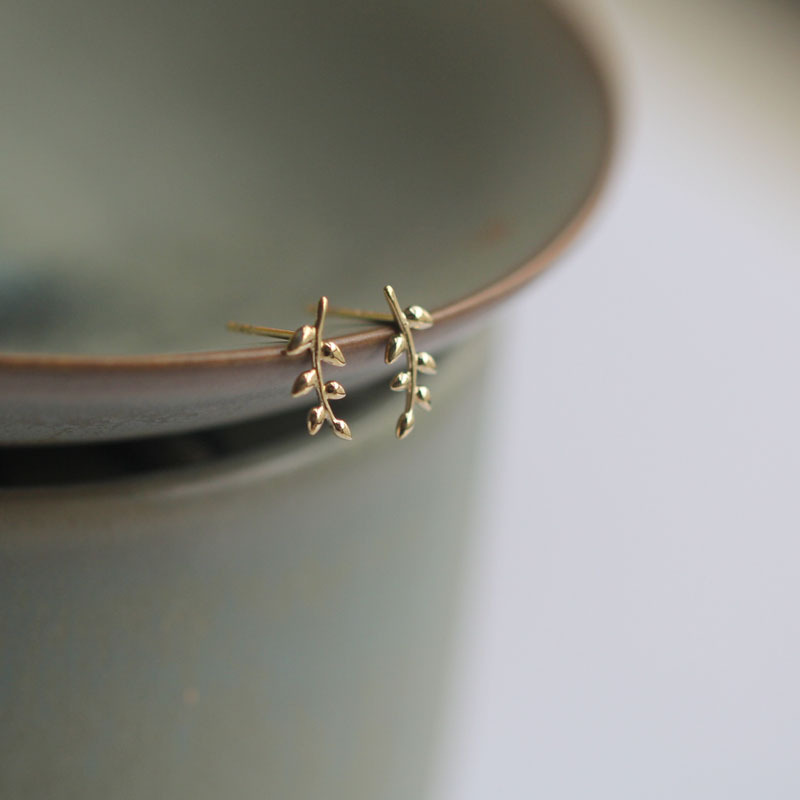 Чистое золото 9k Мини Элегантные листья ветви японский и корейский стиль ins маленькие шпильки уха