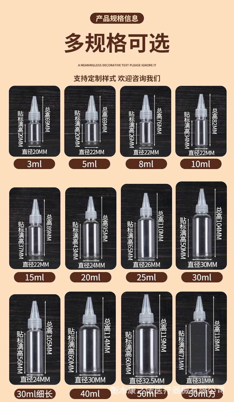 В наличии Оптовая 50 100 мл Сжимающая бутылка Тонер Лосьон Пигмент в бутылках Прозрачная пластиковая остроконечная бутылка