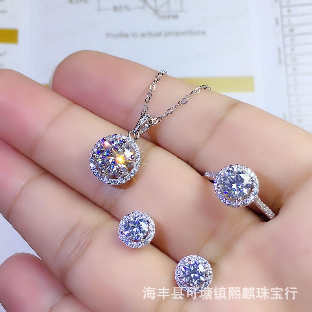 925 Серебряный Платиновый D цвет Мосанг бриллиант Ювелирные изделия Круглый набор из трех частей кольца серьги подвеска роскошный женский производитель