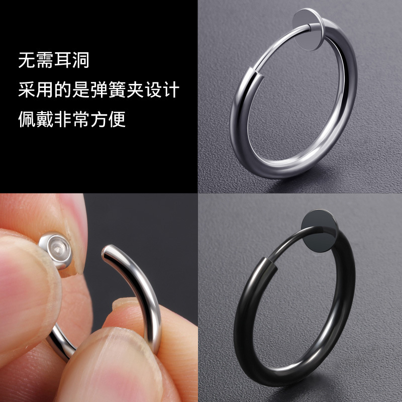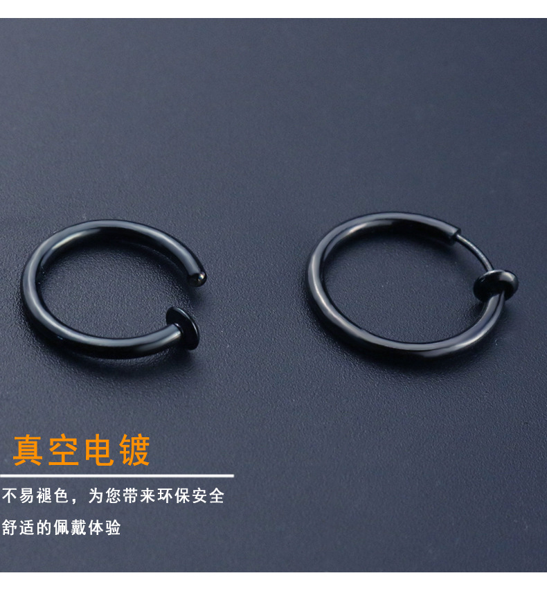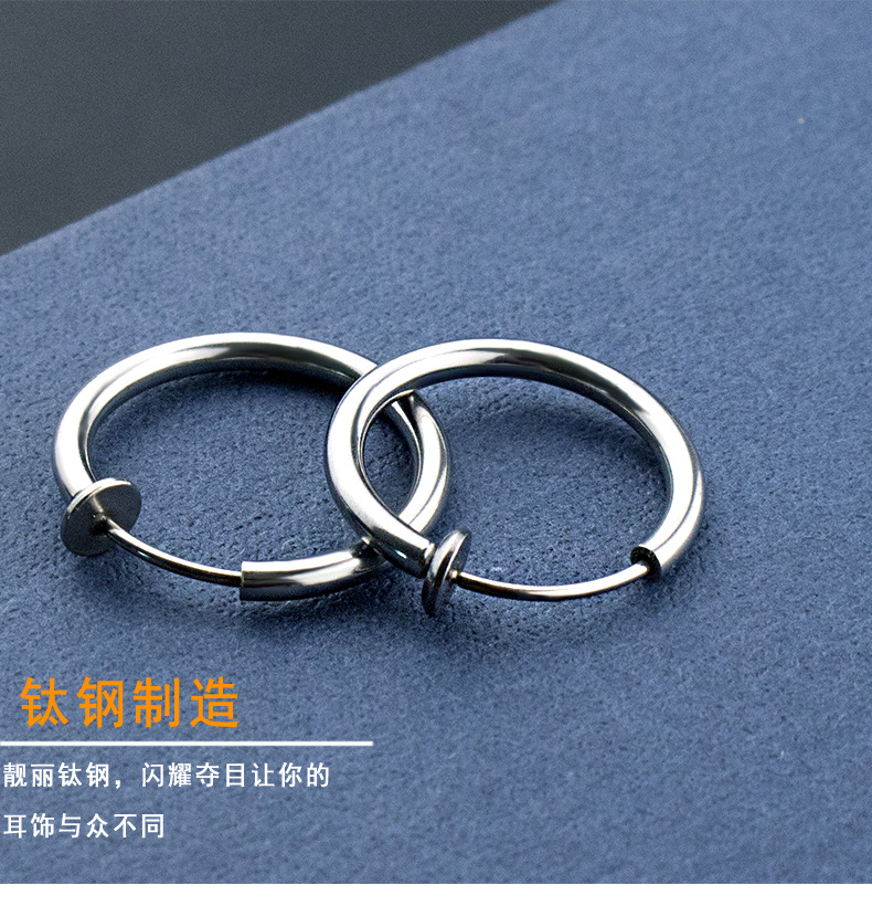 钛钢材质,不生锈,不氧化,真空电镀,不褪色。弹簧设计,佩戴方便。