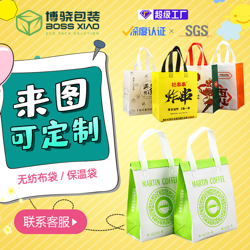 Нетканые сумки для еды на вынос, ламинированные термосумки, индивидуальные упаковочные пакеты для молочного чая, кофе, тортов и закусок на вынос