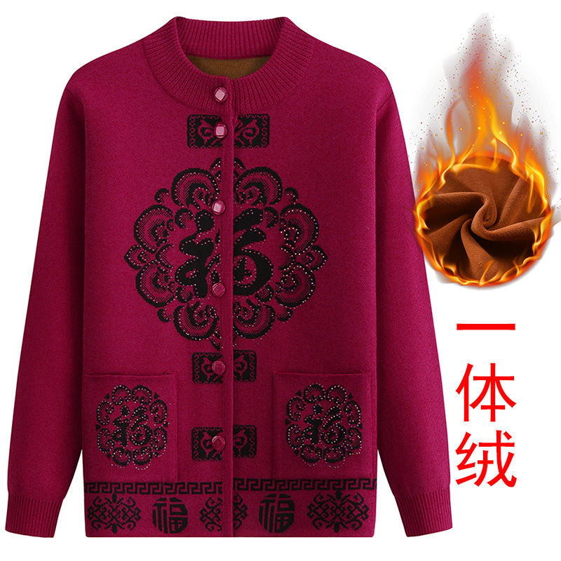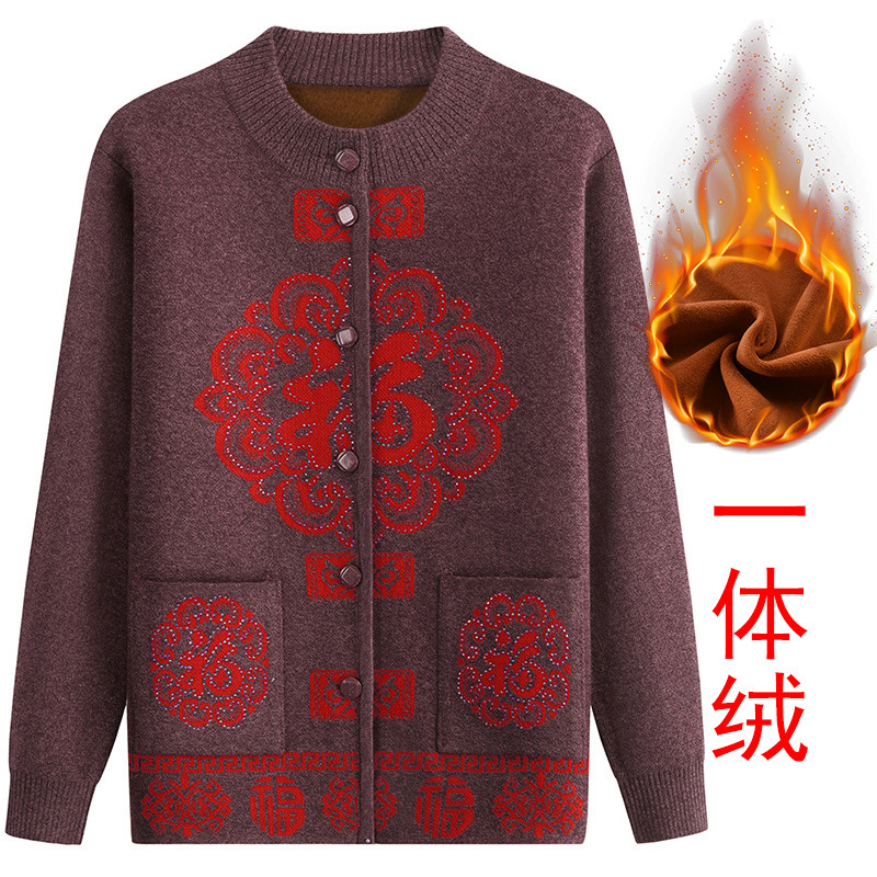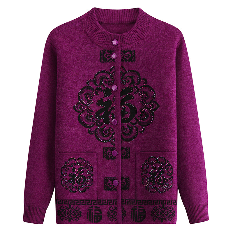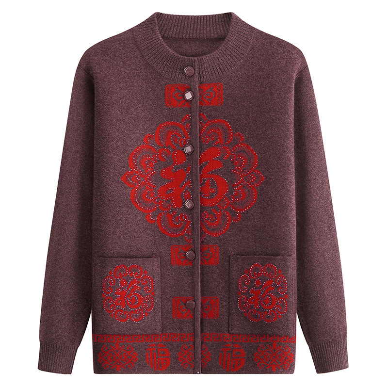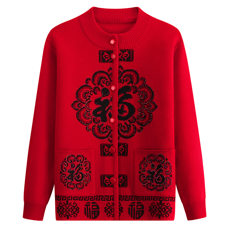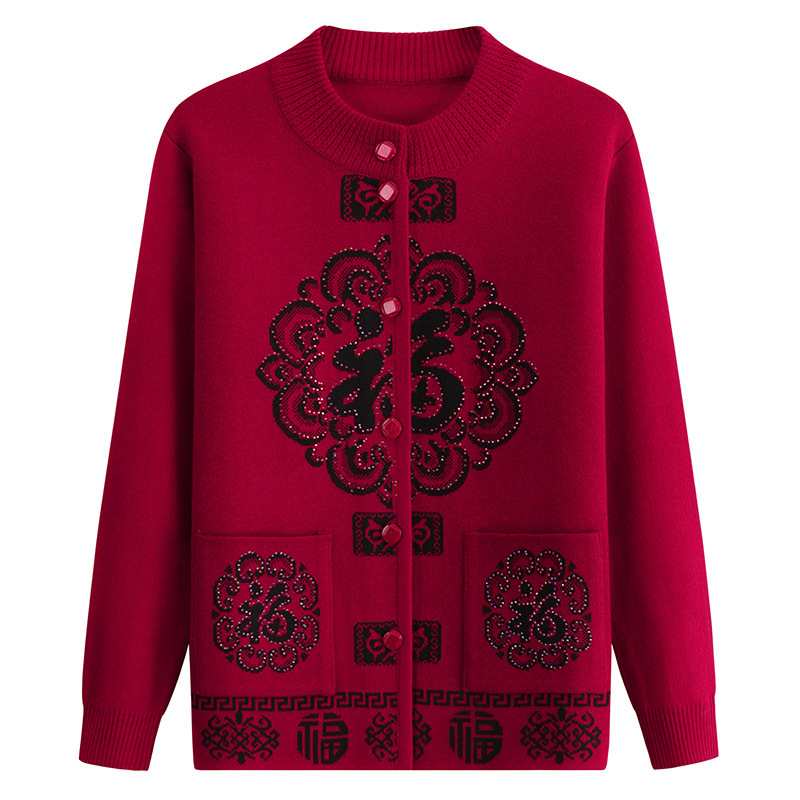 Женский свитер для пожилых людей Костюм Фу-персонажа Тан Осенне-Зимний вязаный новогодний костюм для мамы и весны Праздничный кардиган старой леди бабушки