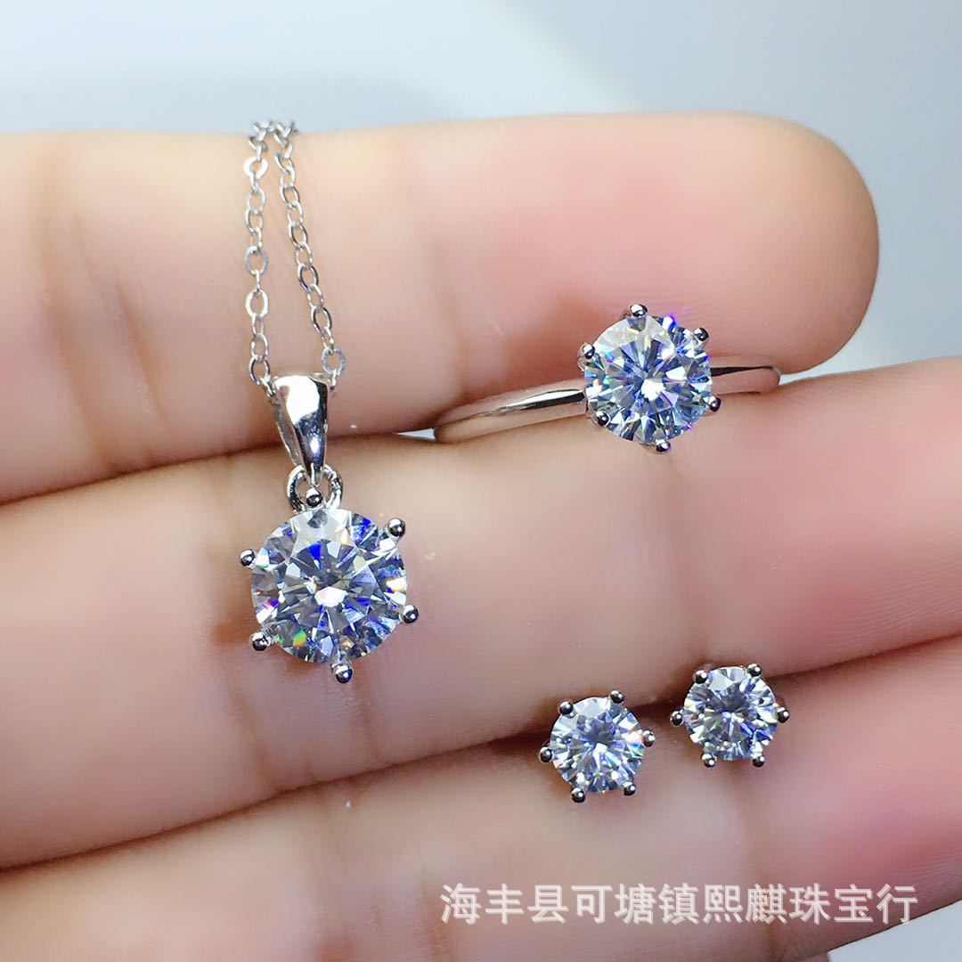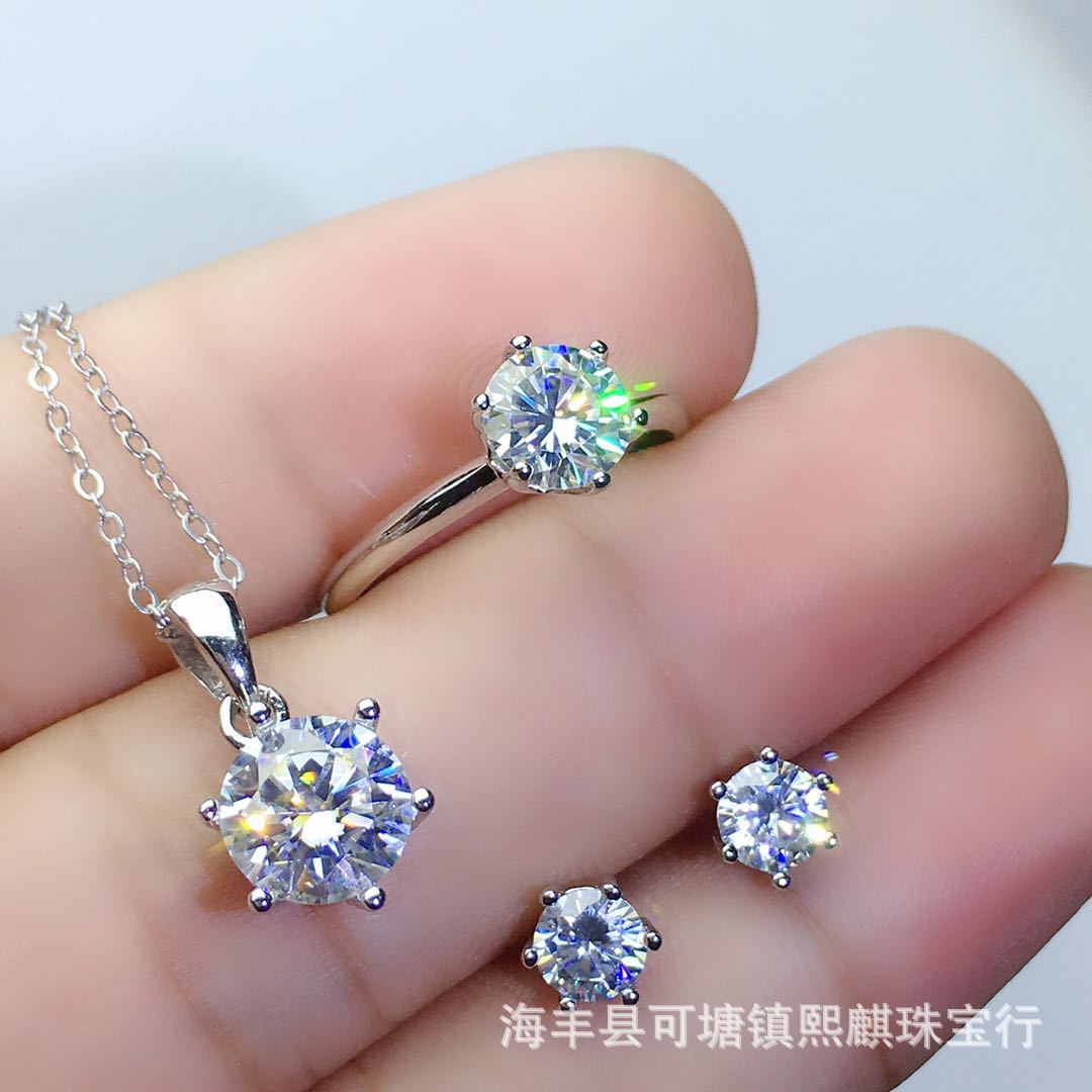 T Home Классический шестикоготный Мосанг бриллиантовое кольцо с подвеской ожерелье серьги из трех частей набор 925 серебряный живой цвет D цвет женский оптом