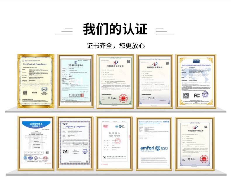 产品拥有CE,FCC,RoHS认证,电池检测报告,KC认证等