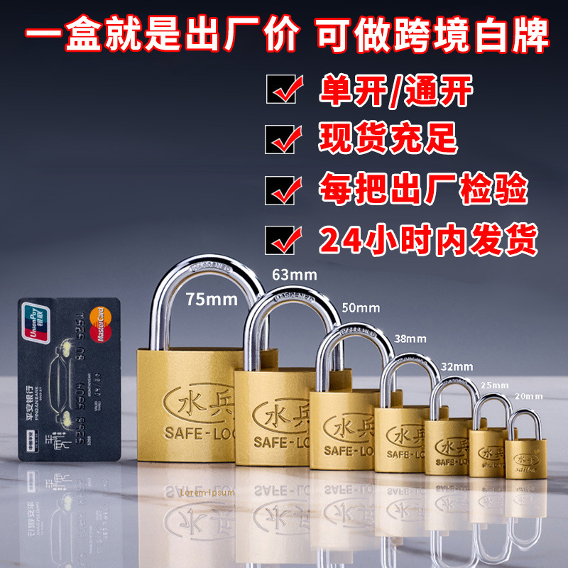 Навесной замок Sailor с железной цепью, маленький, с медным замком-защелкой, имитация меди, для дома, универсальный ключ [Трансграничная торговля, белая этикетка]