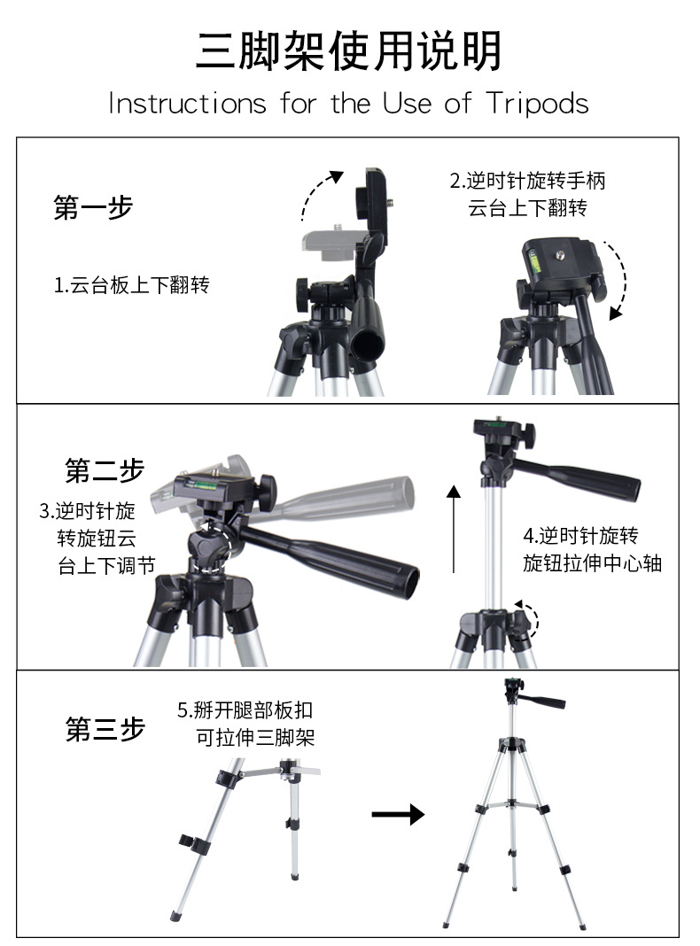 Серебряный раздел (за исключением держателя для мобильного телефона); Серебристый трехсекционный штатив (без зажима для мобильного телефона); 1.1m Серебряный четырехсекционный штатив (без зажима для мобильного телефона); 1.1m Серебряный утолщенный штатив четырехсекционный (без зажима для мобильного телефона); Серебристый трехсекционный штатив (без зажима для мобильного телефона); Серебристый четырехсекционный штатив (без держателя для мобильного телефона); 1.5m Серебряный трехсекционный штатив (без зажима для мобильного телефона)