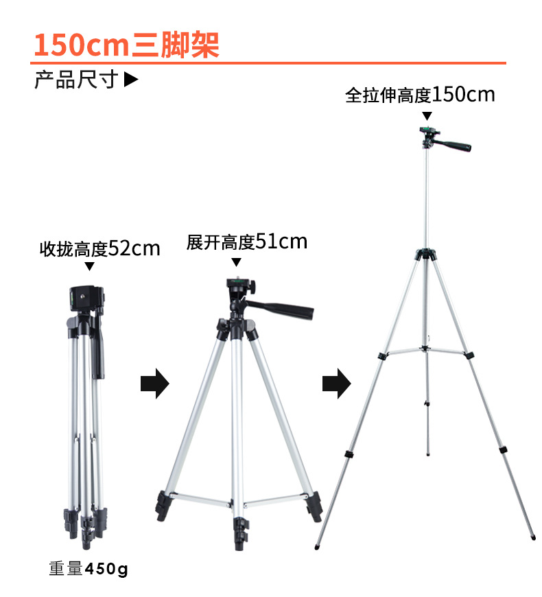 Штатив из легкого алюминиевого сплава 1.5m от производителя, для мобильных телефонов, для прямых трансляций, для астрономических телескопов