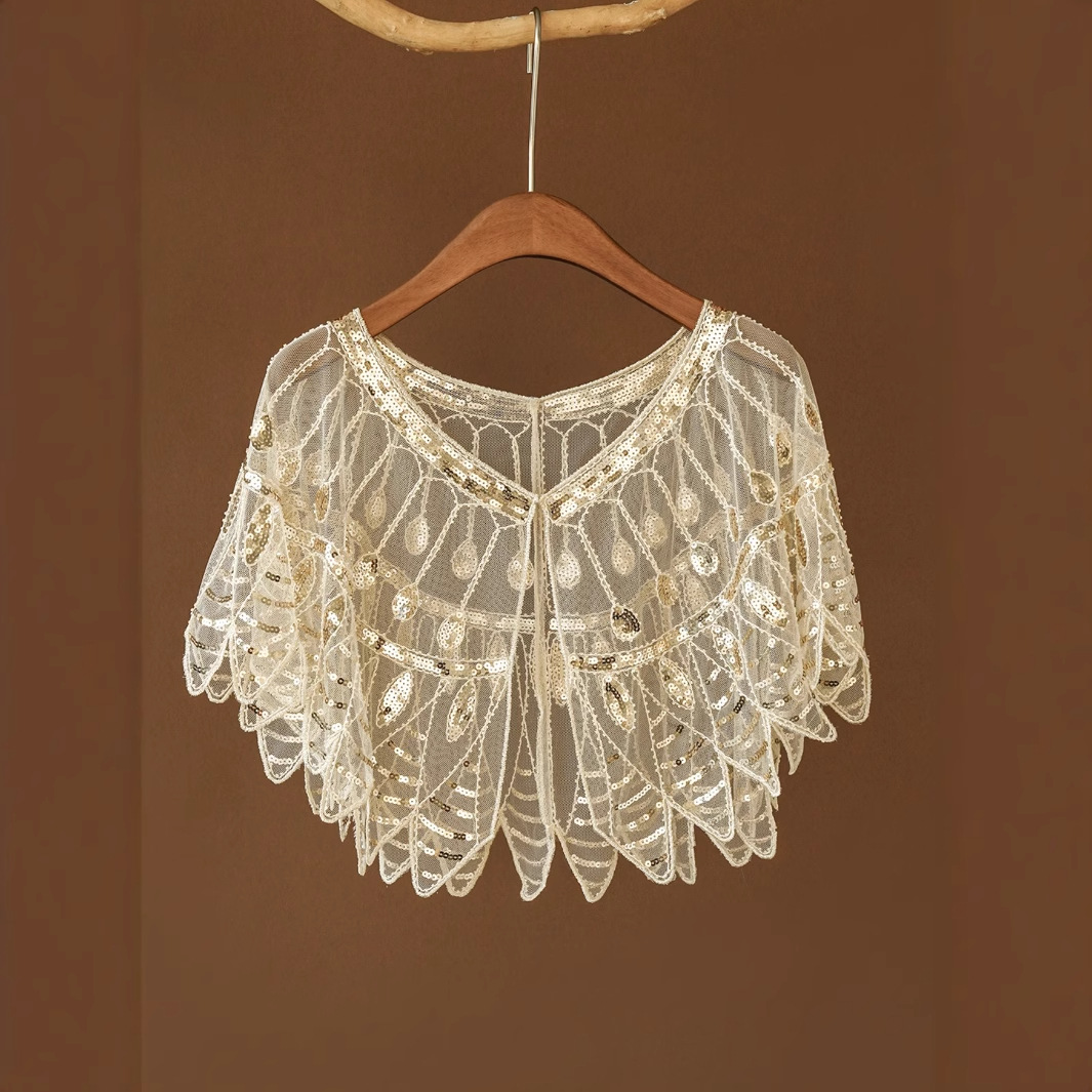 Поколение волос платье шаль полые за пределами тяжелой промышленности Cheongsam блестками жилет мыс сладкий пальто