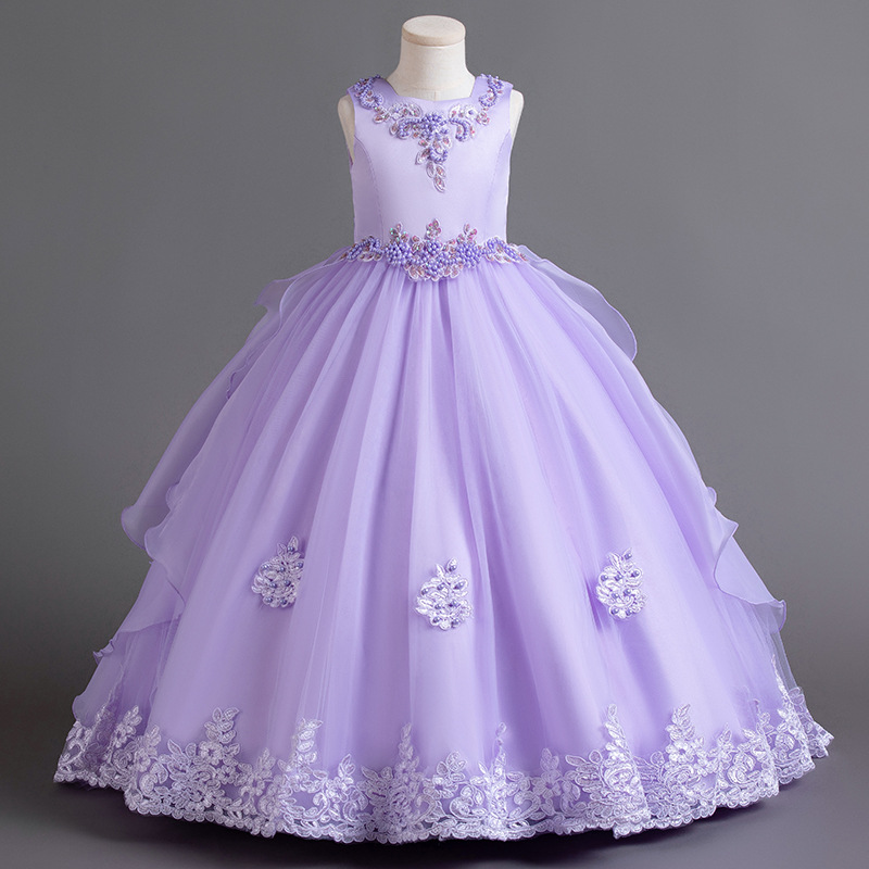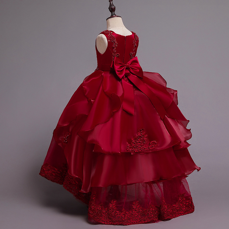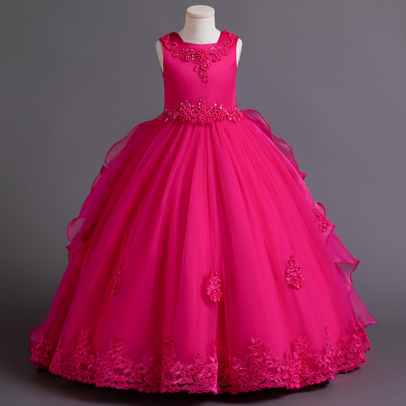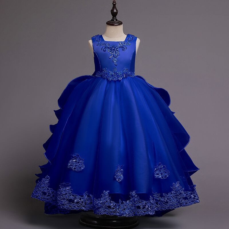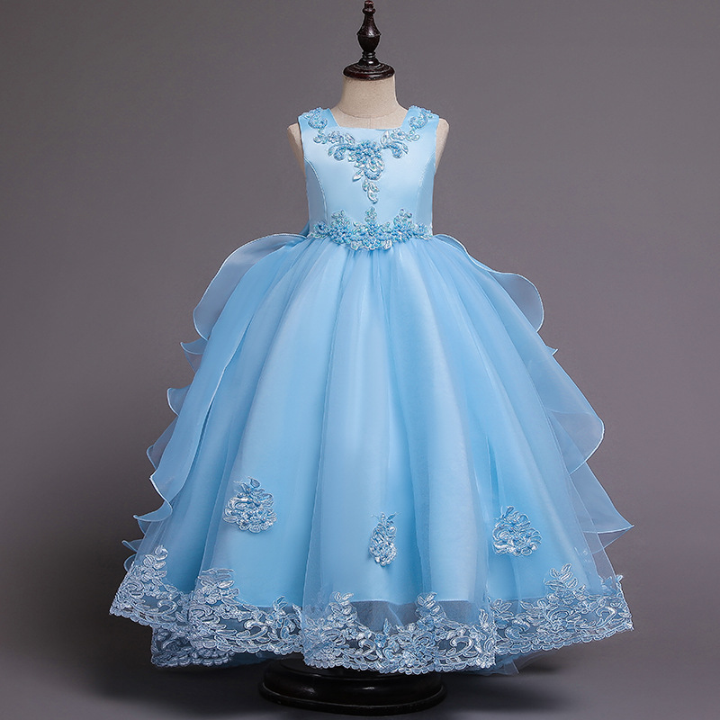 Детское платье принцессы, летнее свадебное платье, платье для детей среднего и большого размера, платье для выступлений, длинное платье с пушистым хвостом, детская одежда с цветочным принтом