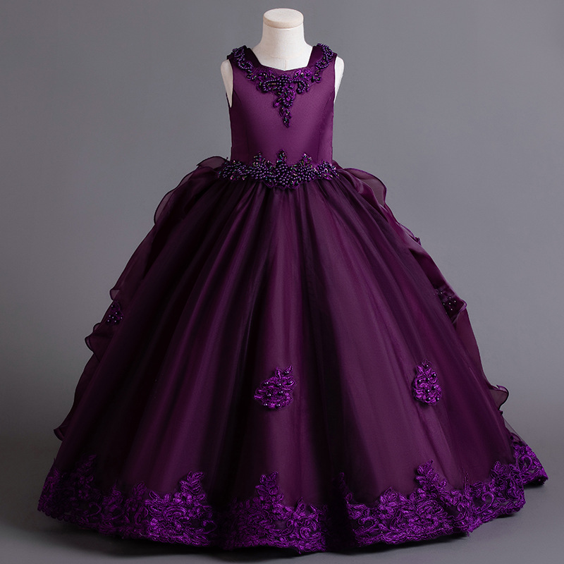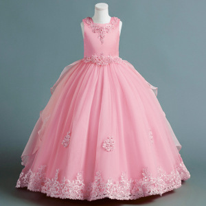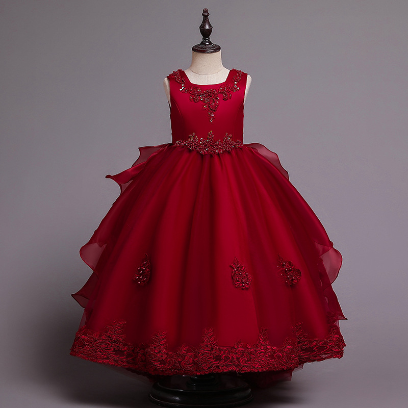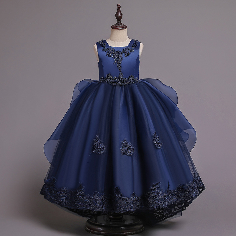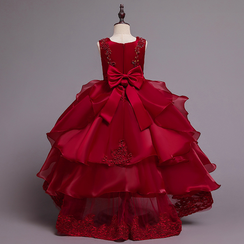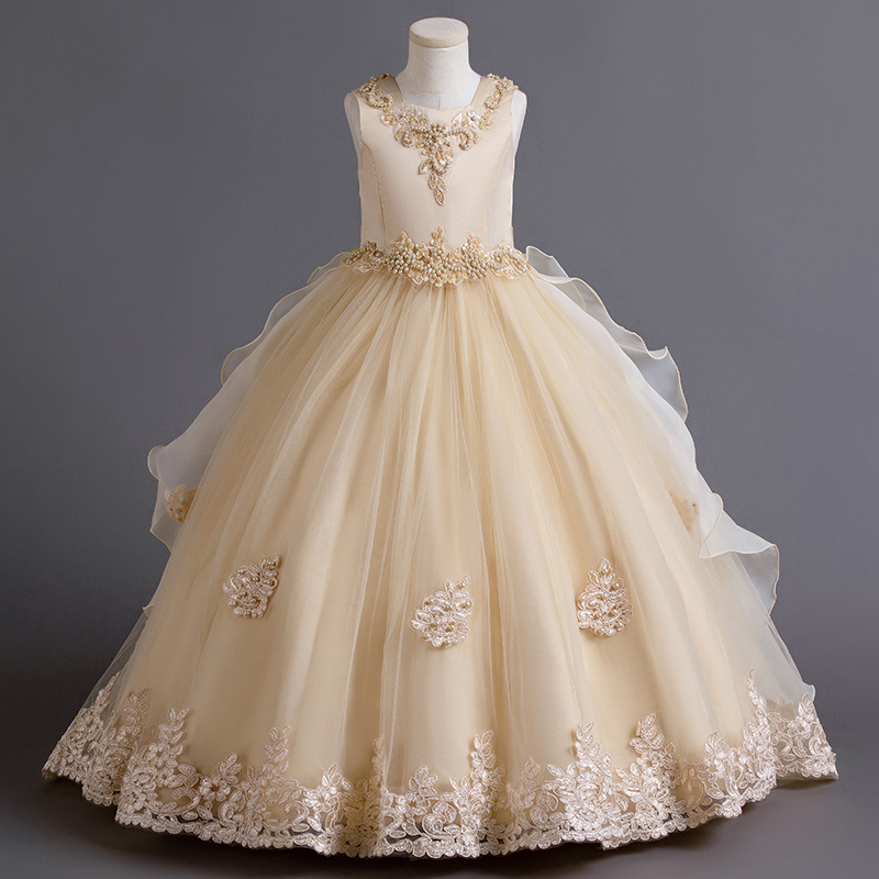 Детское платье принцессы, летнее свадебное платье, платье для детей среднего и большого размера, платье для выступлений, длинное платье с пушистым хвостом, детская одежда с цветочным принтом