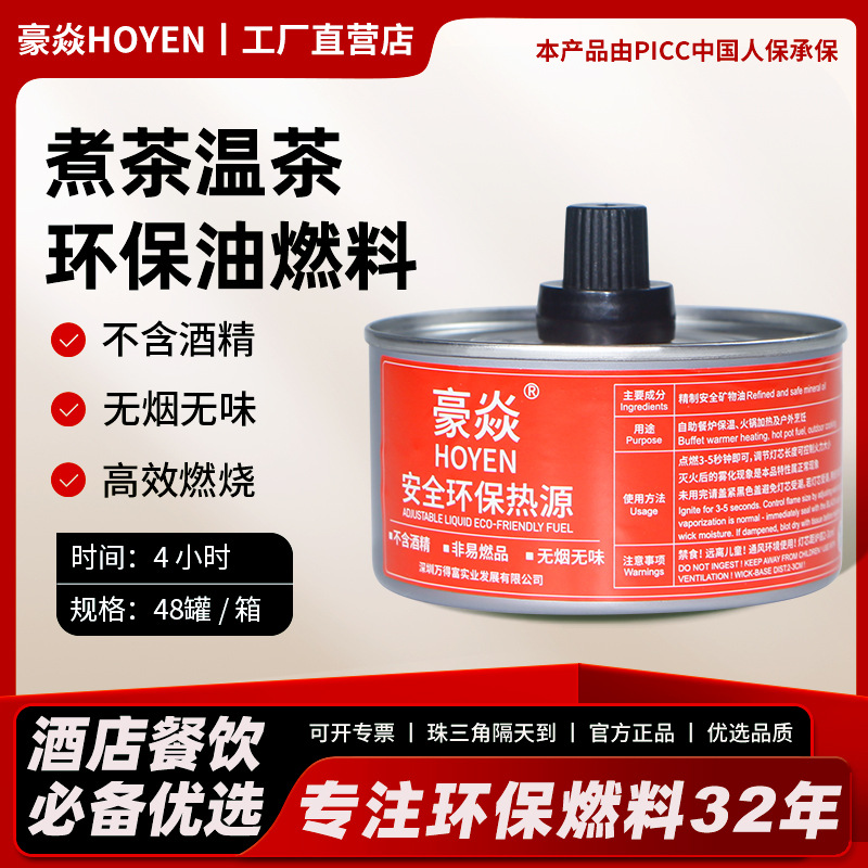 Завод Хаоянь продает изоляционное топливо для буфетных плит, обеспечивающее 4-часовое одноконфорочное нагревание для заваривания чая, жидкое топливо в банках для коммерческого использования.