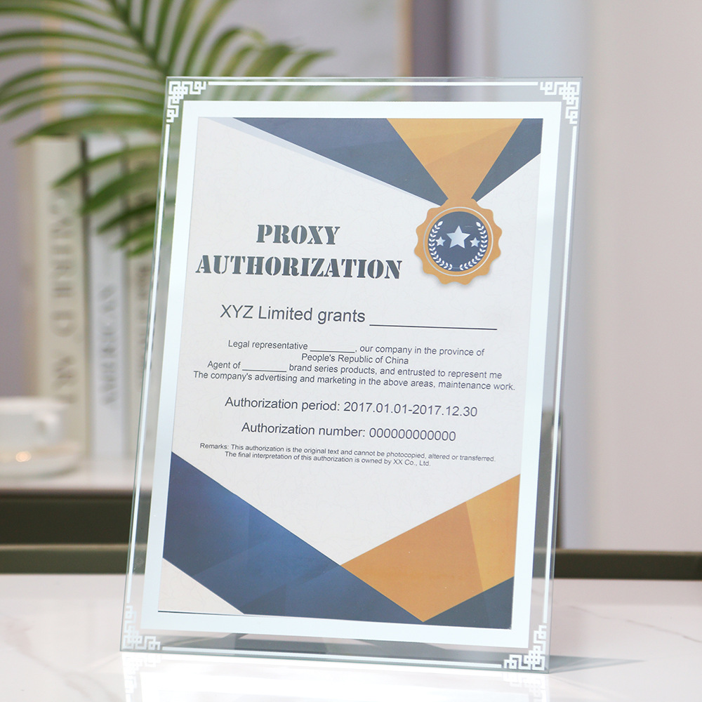 Производитель Бизнес лицензия рамка стеклянная рамка кристалл прозрачная фото рамка сертификат дисплей коробка сертификат Стенд оптом