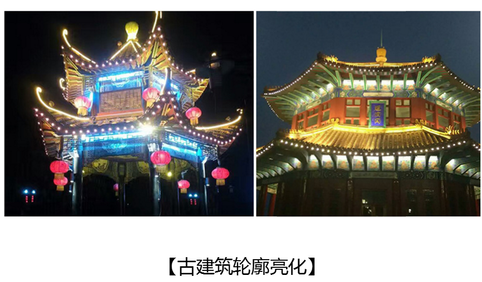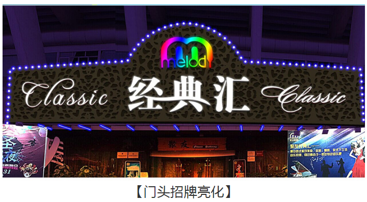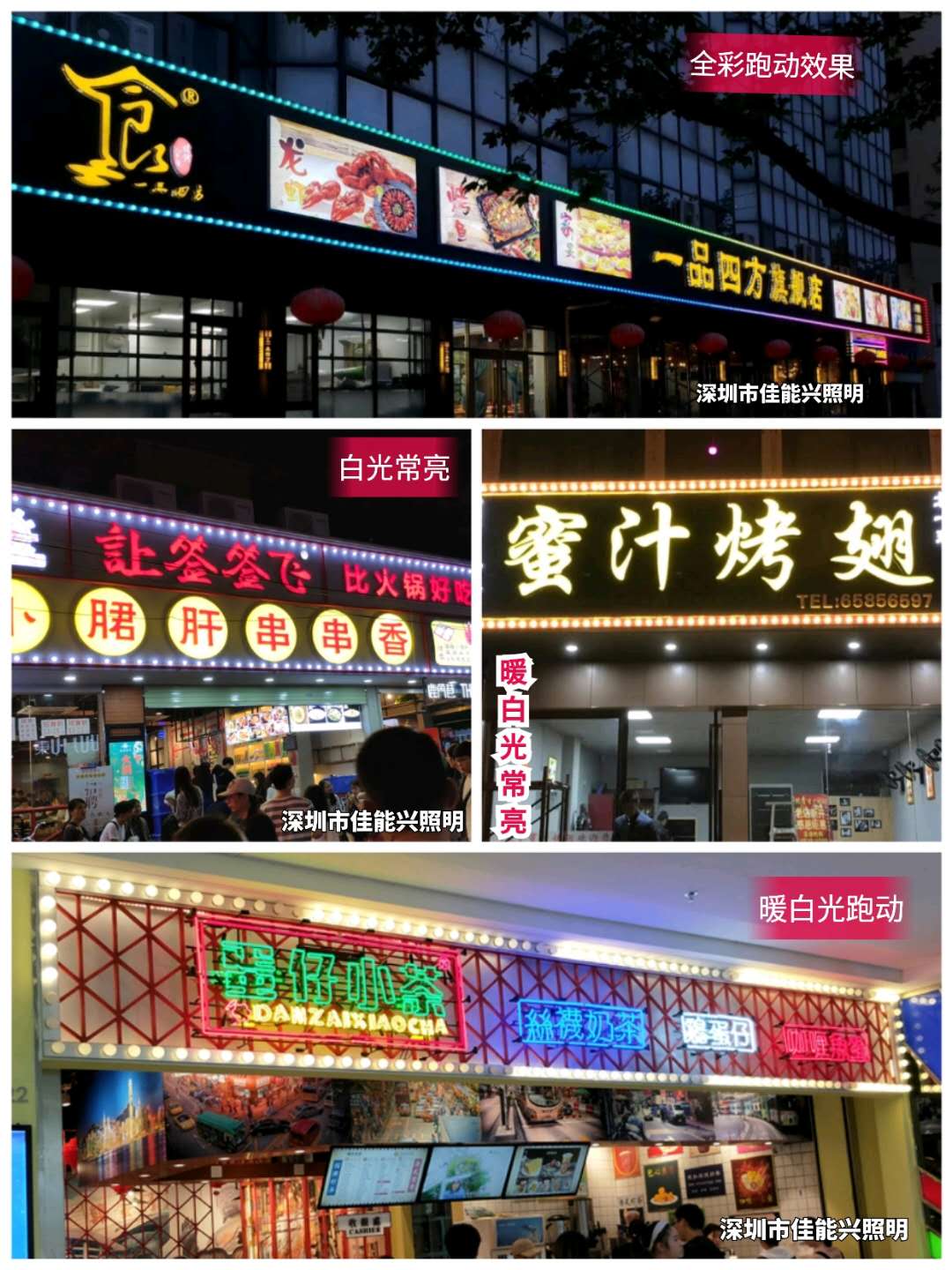 Рекламные вывески, светящиеся персонажи, развлекательная техника, контуры внешних стен, внутреннее атмосферное освещение, различные формы.