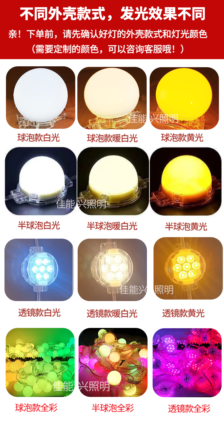 Плоский монохромный 3 см всегда включен (центральное расстояние 13,5 см 30 штук/нитка, снимок в соответствии со цельной струной); Модель объектива 3 см, полноцветная работа (центральное расстояние 15 см, 30 штук/нитка, снимок в соответствии со цельной струной); Полусферическая лампа 3 см, одноцветная, всегда включенная (центральное расстояние 13,5 см, 30 шт./нитка, выстрел в соответствии со цельной струной); Полусферическая лампа 3 см, полноцветная, работающая (центральное расстояние 15 см, 30 штук/нитка, снимок в соответствии со цельной струной); Полусферический монохромный ход 3 см (центральное расстояние 15 см 25 штук/нитка, снимок в соответствии со цельной струной); Модель объектива 5 см, одноцветная, всегда включена (центральное расстояние 17 см, 30 шт./нитка, 1.6m фонари, съемка в соответствии со цельной струной); Модель объектива 5 см, полноцветная работа (центральное расстояние 17 см, 30 шт./нитка 1.6m фонари, снятие в соответствии со цельной строкой); Полусферическая лампа 5 см, одноцветная, всегда включена (центральное расстояние 17 см, 30 шт./нитка, 6 лампочек/метр, указан как 1 лампа, выстрел в соответствии со цельной строкой; Полусферическая лампа 5 см, полноцветная (центральное расстояние 17 см, 30 шт./нитка, 6 лампочек/метр, съемка в соответствии со цельной струной); Одноцветная лампа 4,5 см всегда включена (центральное расстояние 13,5 см, 30 шт./нитка, 7 лампочек/метр, указан как 1 лампа, съемка в цельной цепочке); Полноцветная лампа 4,5 см (центральное расстояние 15 см, 30 шт./нитка, 7 лампочек/метр, съемка в соответствии со цельной струной); монохромная лампа 5 см всегда включена (центральное расстояние 20 см, 20 шт./нитка, 5 лампочек/метр, указан как 1 лампа, выстрел в соответствии со ценой цепочкой); Монохромная или полноцветная лампа 5 см (центральное расстояние 20 см, 20 шт./нитка, 5 лампочек, съемка в соответствии со цельной струной); Одноцветная лампа 6 см всегда включена (в помещении не водонепроницаема, расстояние между центрами 20 см, 20 шт./нитка, 5 лампочек/метр, съемка в соответствии со цельной строкой); Полноцветная лампа 6 см (в помещении не водонепроницаемая, расстояние между центрами 20 см, 20 шт./нитка, 5 лампочек/метр, съемка в соответствии со цельной струной); Одноцветная лампа 6,5 см всегда включена (центральное расстояние 17 см, 30 шт./нитка, 6 лампочек/метр, указан как 1 лампа, выстрел на цельной цепочке); Полноцветная лампа 6,5 см (центральное расстояние 17 см, 30 шт./нитка, 6 лампочек/метр, съемка в соответствии со цельной струной); монохромная лампа 7 см всегда включена (центральное расстояние 20 см, 20 шт./нитка, 5 лампочек/метр, съемка в соответствии со цельной струной); Монохромная или полноцветная лампа 7 см (центральное расстояние 20 см, 20 шт./нитка, 5 лампочек/метр, съемка в соответствии со цельной струной); Одноцветная лампа 9,5 см всегда включена (центральное расстояние 30 см, 20 шт./нитка, 4 лампы/метр, съемка в соответствии со цельной струной); Полноцветная лампа 9,5 см (центральное расстояние 30 см, 20 шт./нитка, 4 лампы/метр, съемка в соответствии со цельной струной)