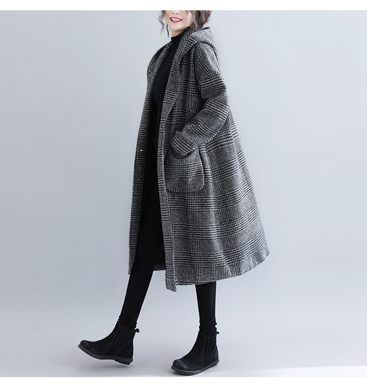 2019 осенне-зимнее Новое корейское шерстяное пальто с узором «гусиная лапка», женская одежда больших размеров
