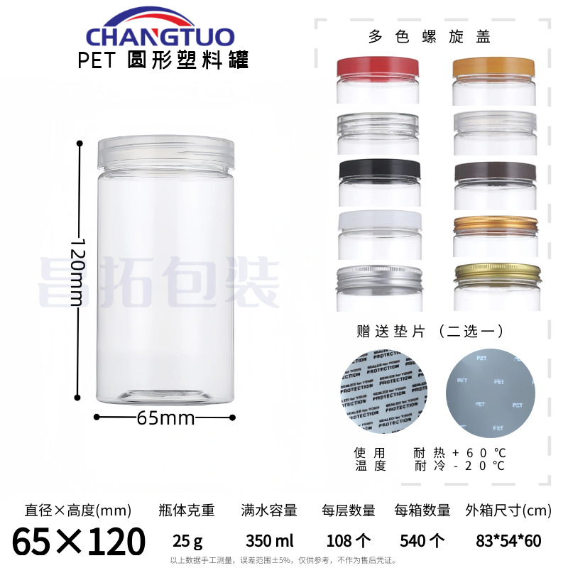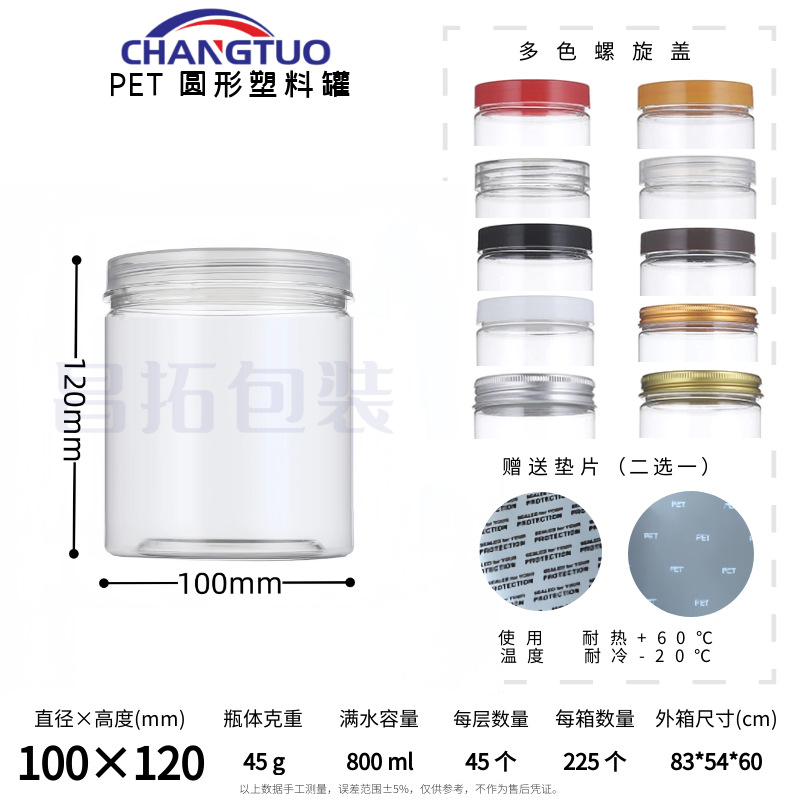 Круглая пластиковая прозрачная герметичная упаковка для домашних животных, упаковка для домашних животных, спиральная чайная ореха, алюминиевая крышка специальной формы с широким горлом