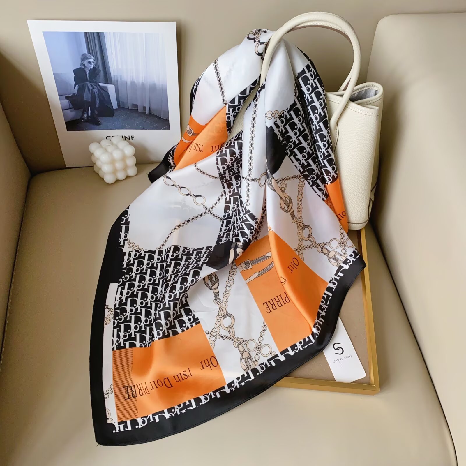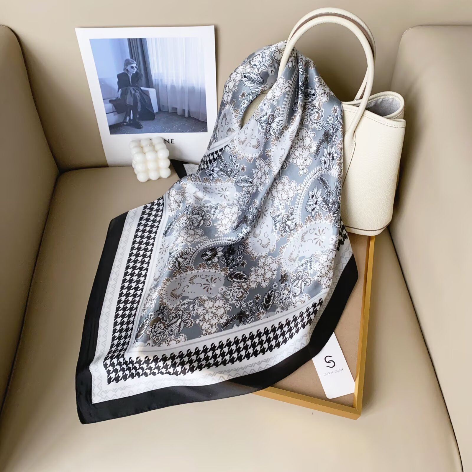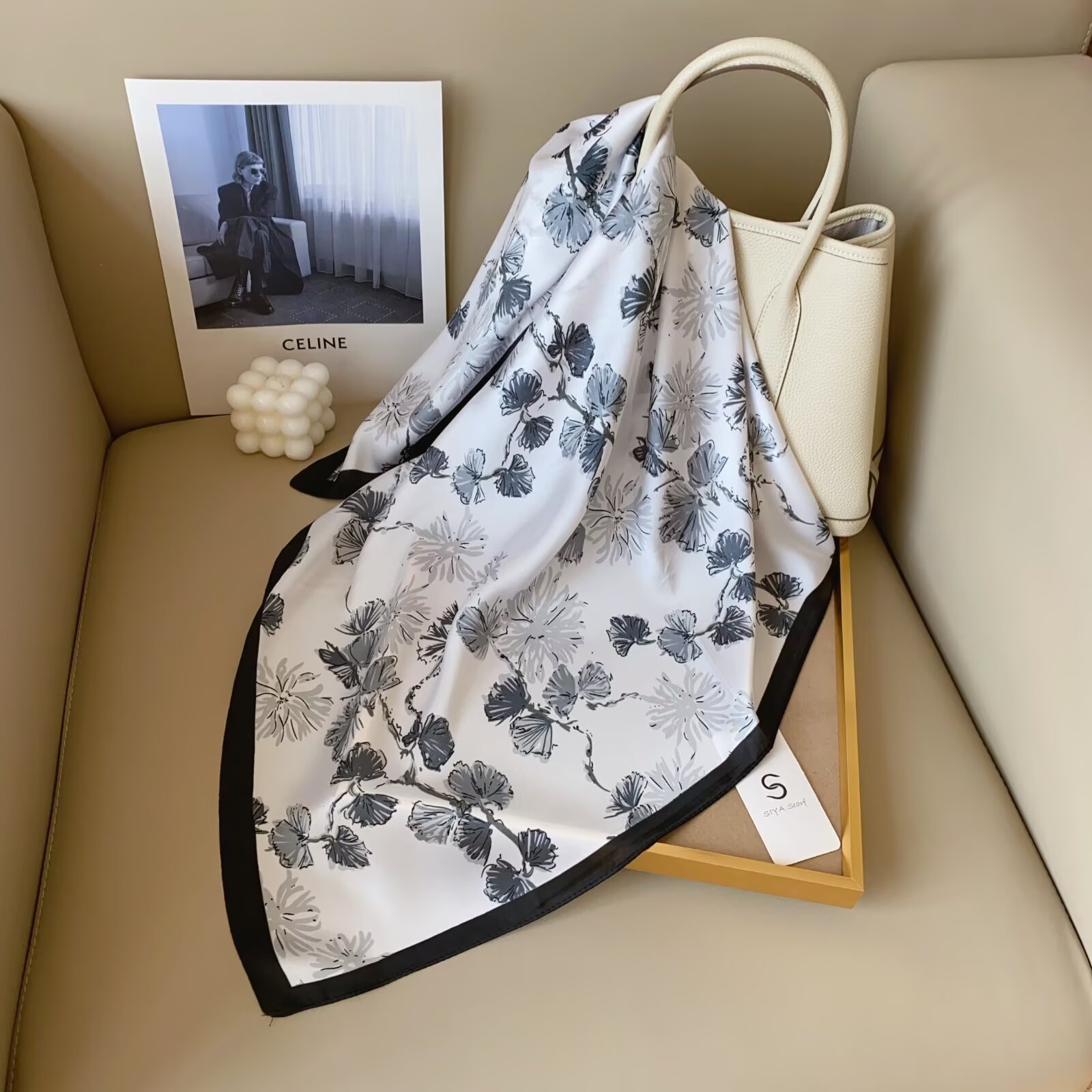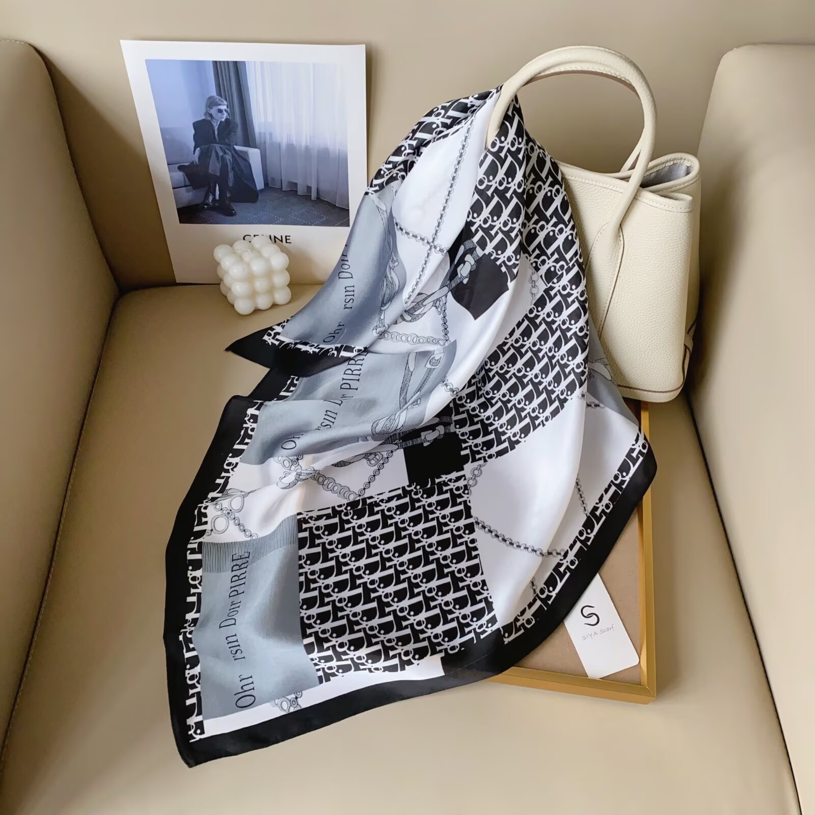2024 Весна и Осень Новый стиль ins Классический черно-белый полосатый шелковый шарф простой тонкий и легкий искусственный шелковый шарф маленький шарф оптовая продажа