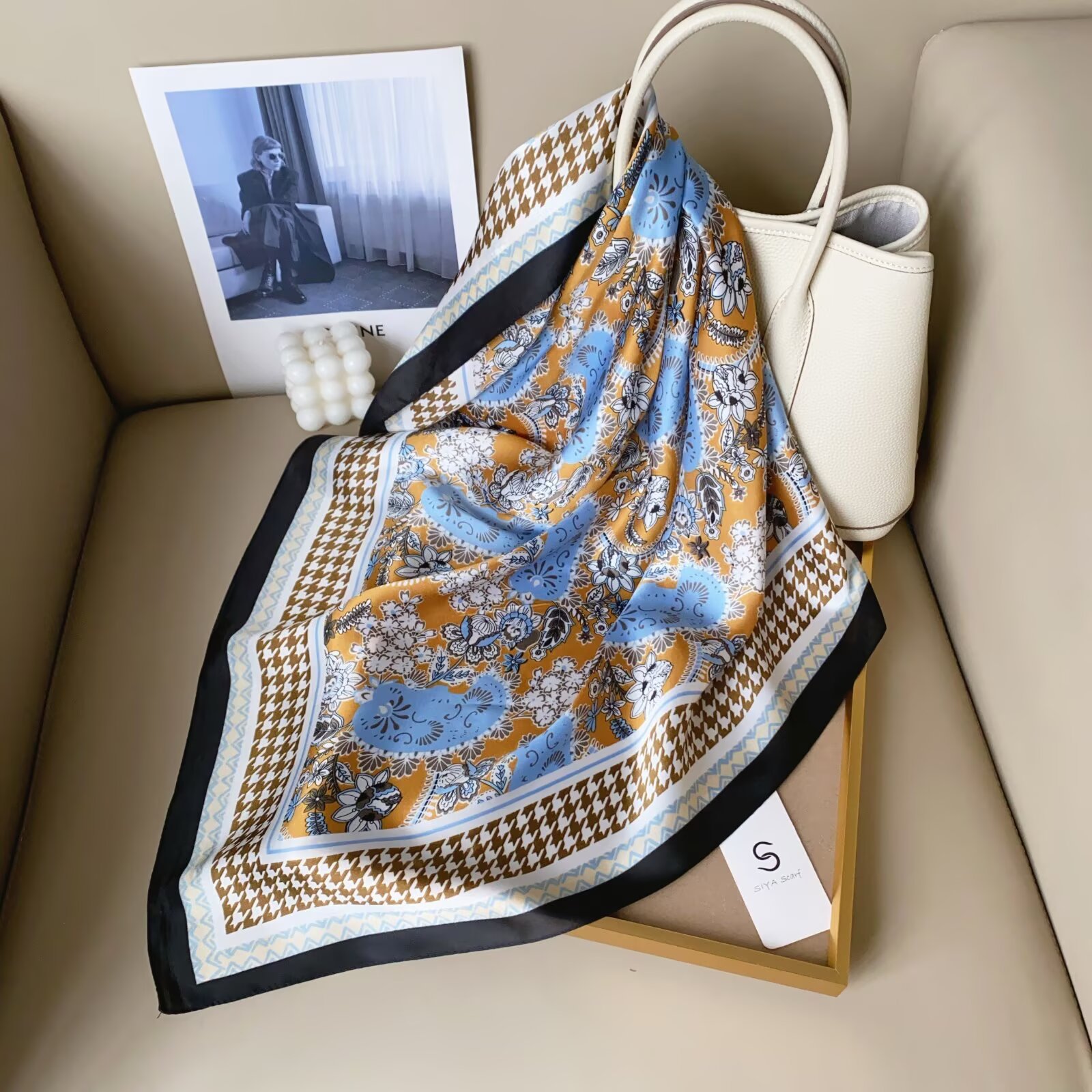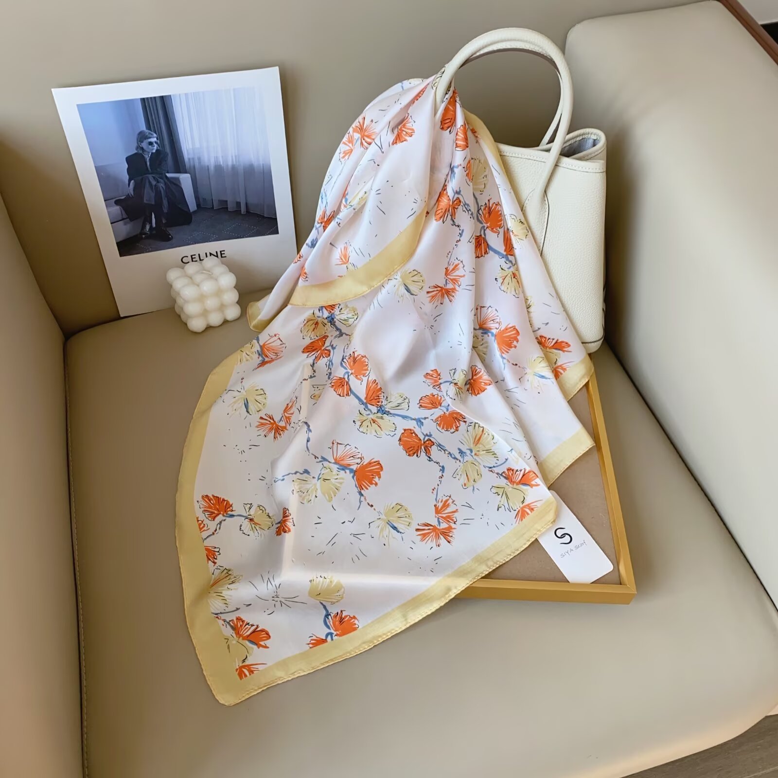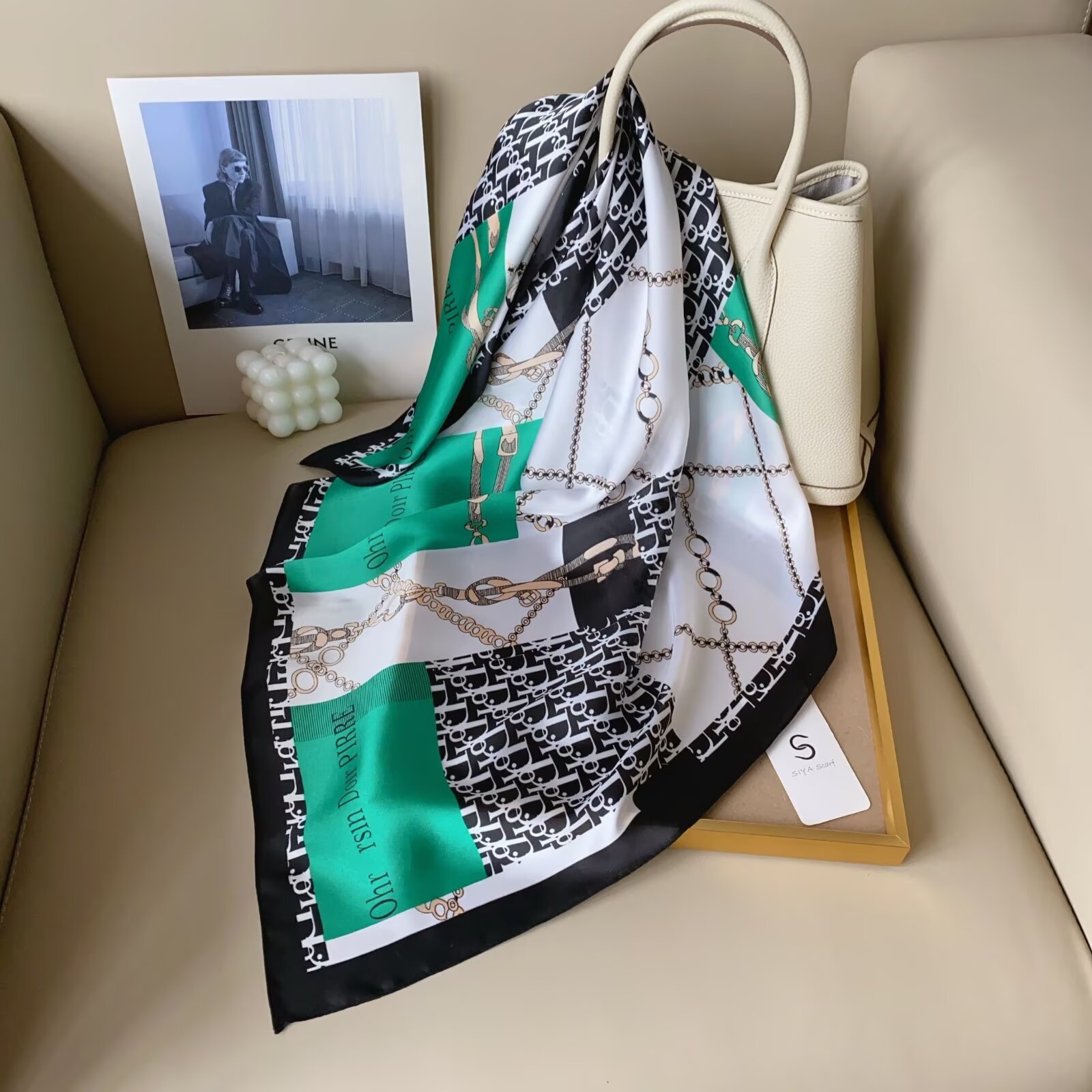 2024 Весна и Осень Новый стиль ins Классический черно-белый полосатый шелковый шарф простой тонкий и легкий искусственный шелковый шарф маленький шарф оптовая продажа
