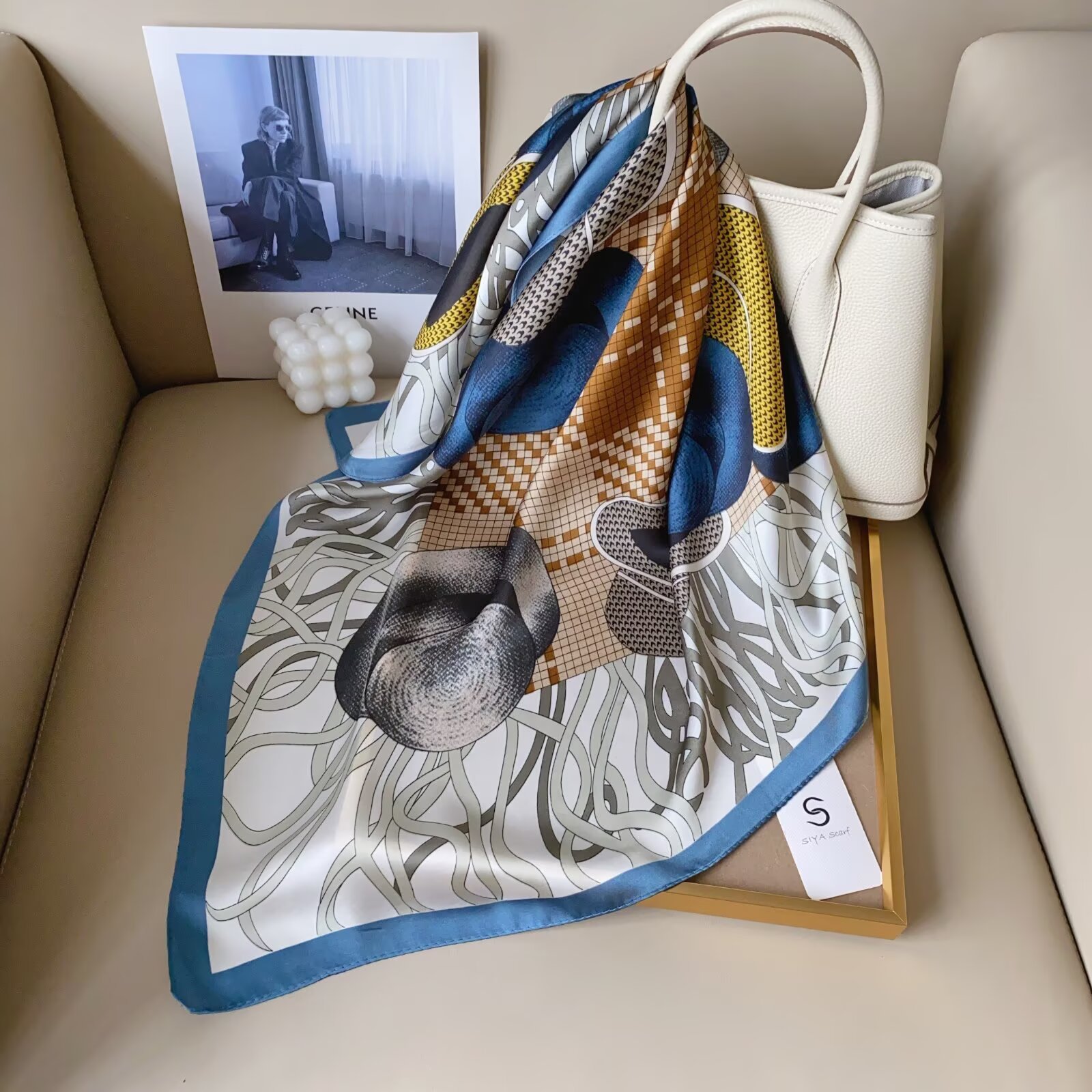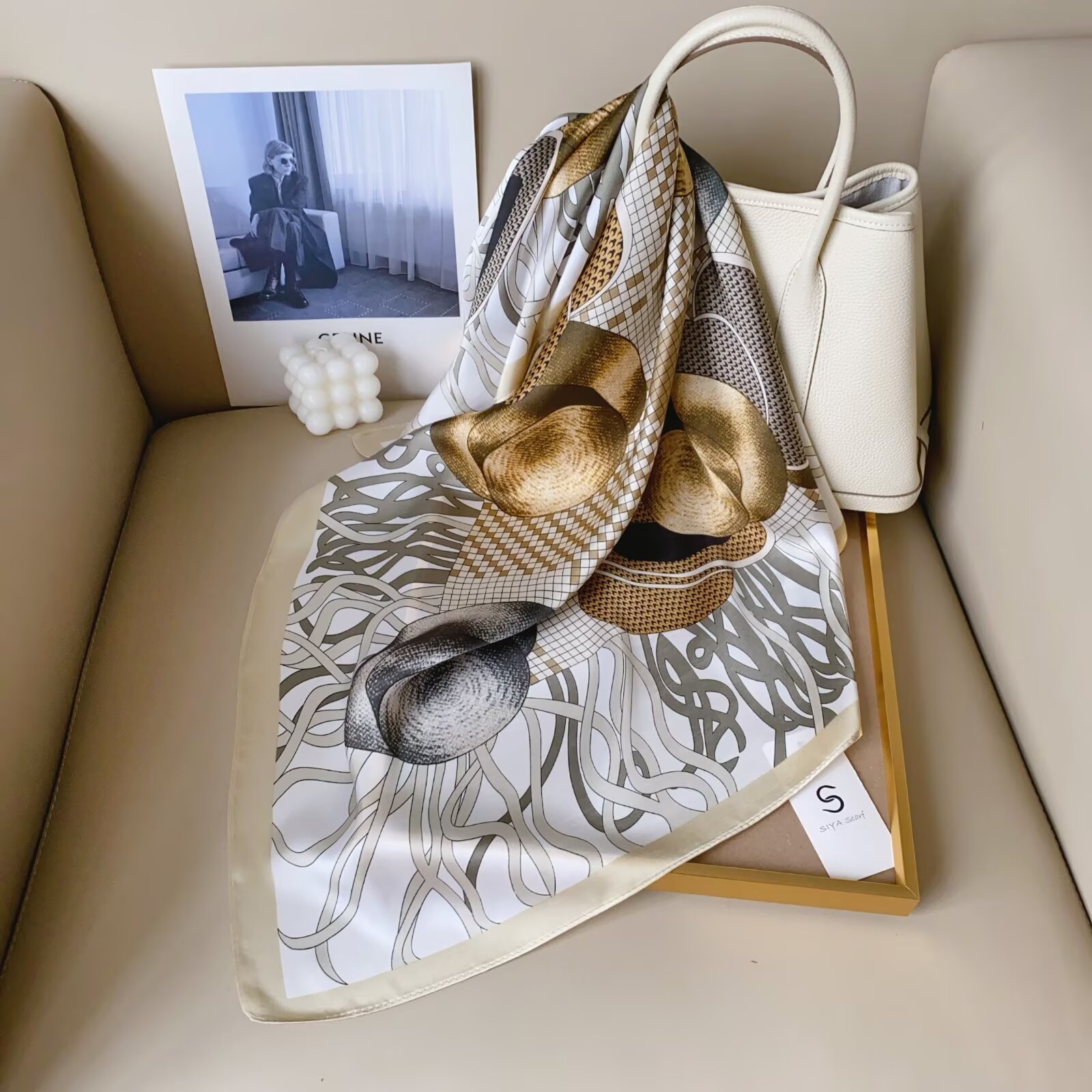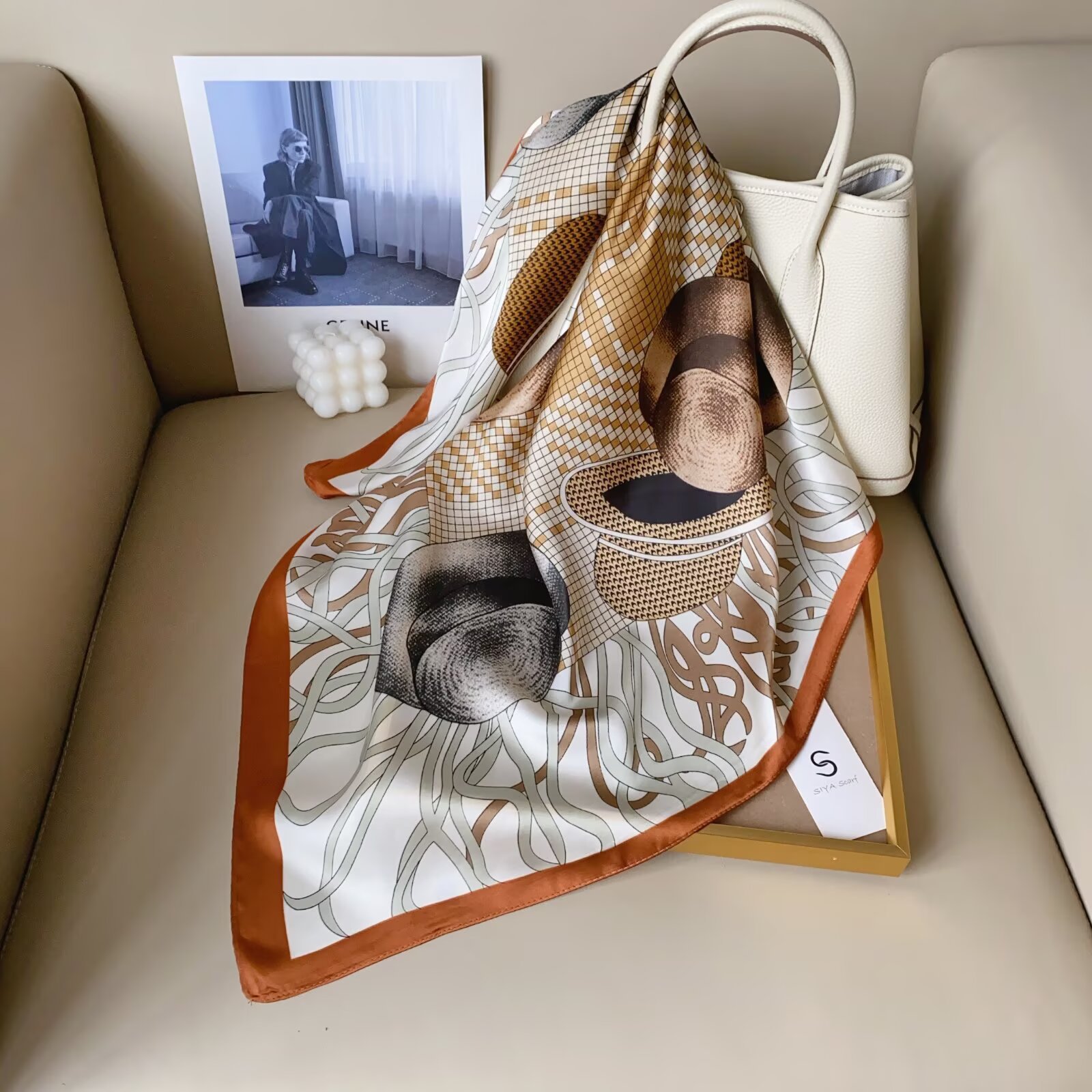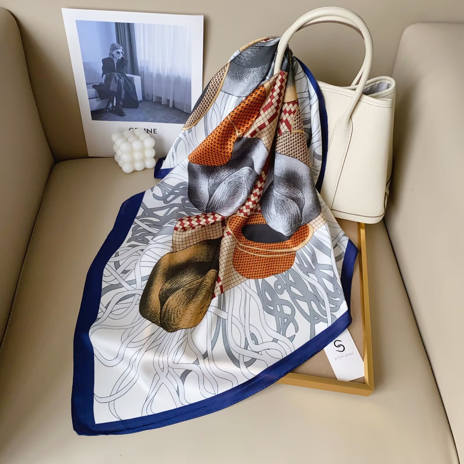 2024 Весна и Осень Новый стиль ins Классический черно-белый полосатый шелковый шарф простой тонкий и легкий искусственный шелковый шарф маленький шарф оптовая продажа
