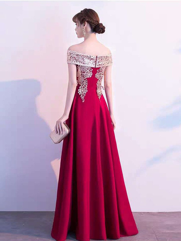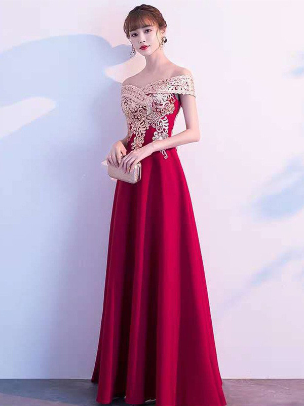 2025 новый свадебный тост костюм весна лето красное платье на плечо темперамент длинная свадебная одежда