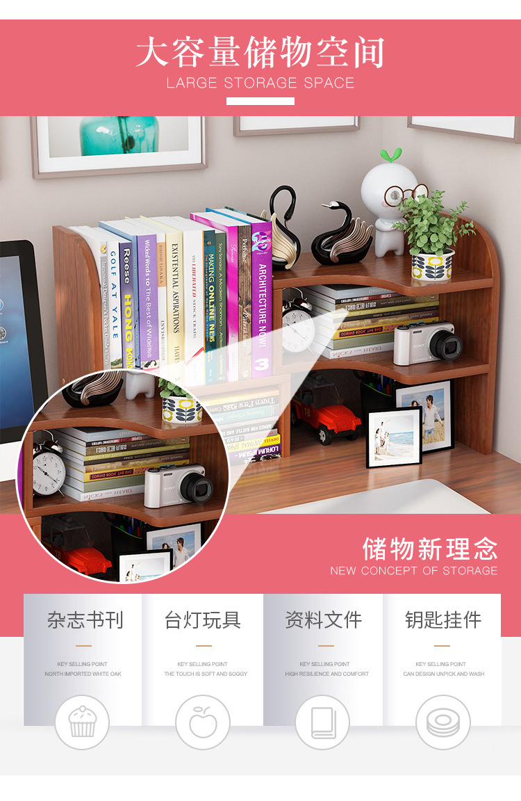 Книжная полка для общежития Стол Студенческий настольный стол Стеллаж для хранения Деревянная Бытовая экономичная комбинированная простая маленькая книжная полка