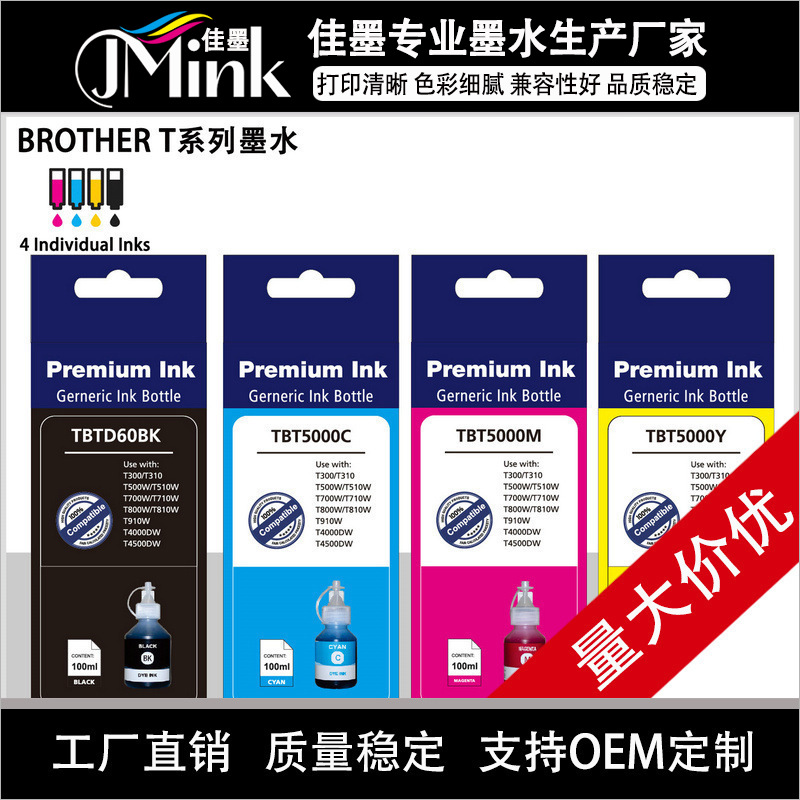 更高打印品质,更快打印速度 墨水特点: 1、颜料黑打印流畅,文字清晰锐利,不毛边,不化墨、染料打印图档色彩丰富,色域宽广,还原出的照片原色彩 2、兼容性强,墨水中含有防堵头因子及超精细0.1micron过滤精度,益于延长喷头寿命,可保持喷头清洁,大限度提升打印的可靠性及生产力,具有佳的干燥时间 3、与原装墨水兼容 4、经三级过滤体系灌装,清除了墨水中的杂质颗粒,保证不堵喷头 5、经过低温和高温反复试验,墨水化学稳定性良好,不易变质,不易沉淀 |