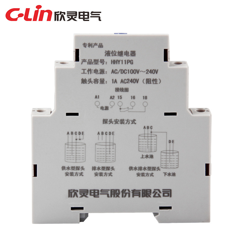 HHY11PG液位继电器(以下简称继电器),结合高层楼宇上、下水池(水塔)水位分级提升的特点进行设计,有上、下水池联合控制自动给水和排水控制等功能,能有效防止水池水位过高溢出或水泵因空转于损坏,是一种工矿企业、学校及家庭用水的水塔、水井液位自动控制的产品。